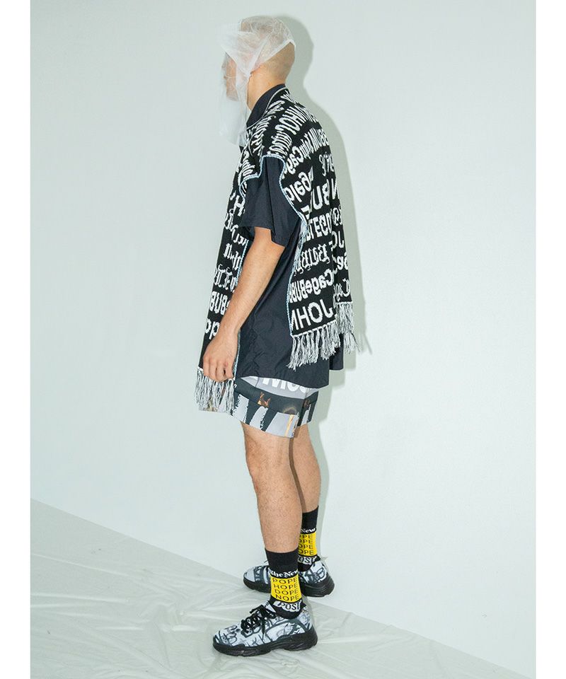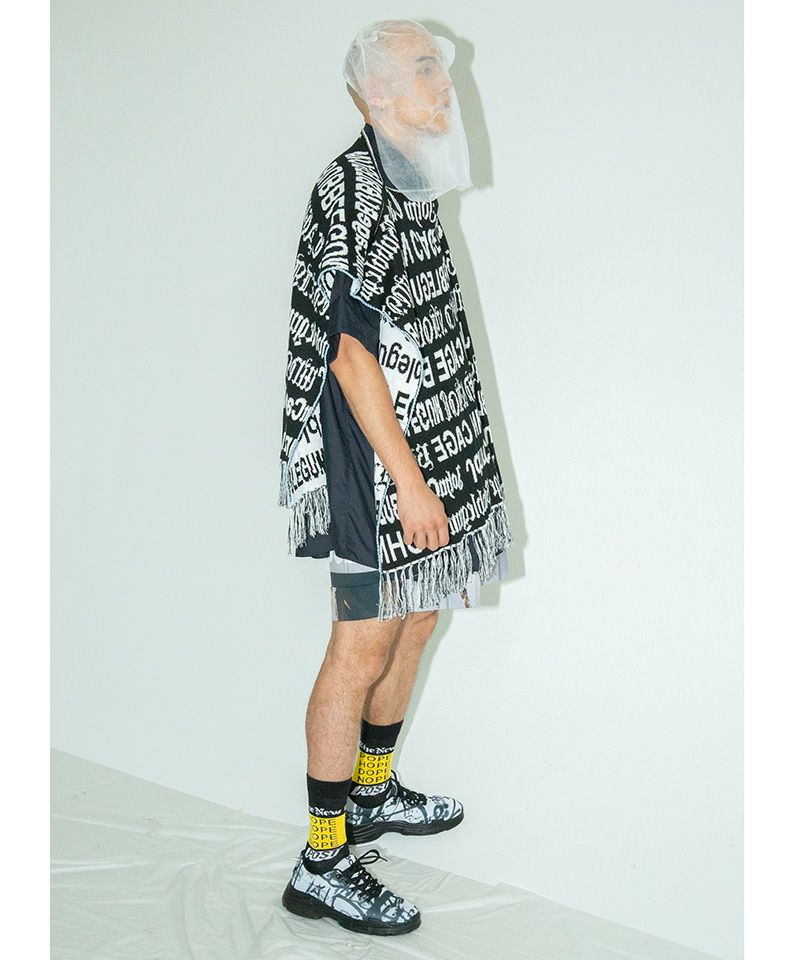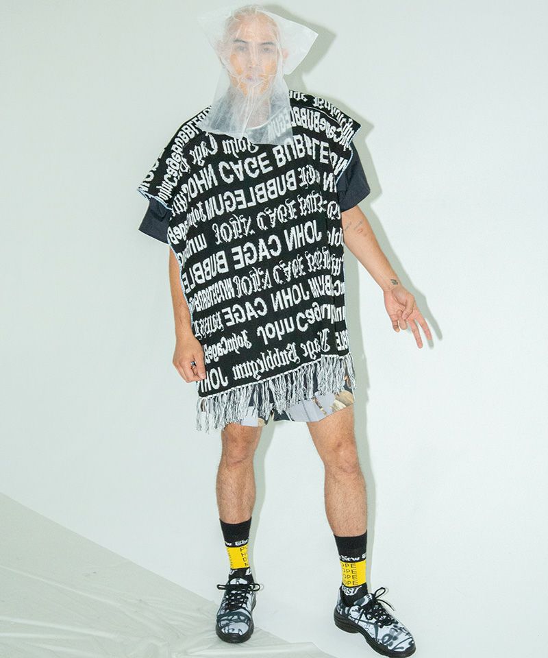 カラーBLACKMIXはシーズンイメージキーワードの、John Cage Bubblegum文字柄の編地。