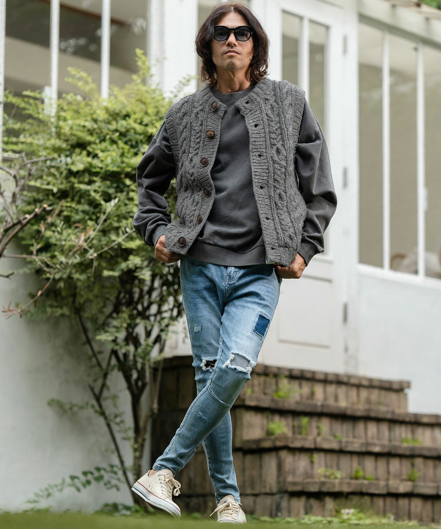 CAMBIO 30%OFF【CAMBIO(カンビオ)】Distressed Hickory Repair Denim Shirts デニムシャツ(MIU-242-016)