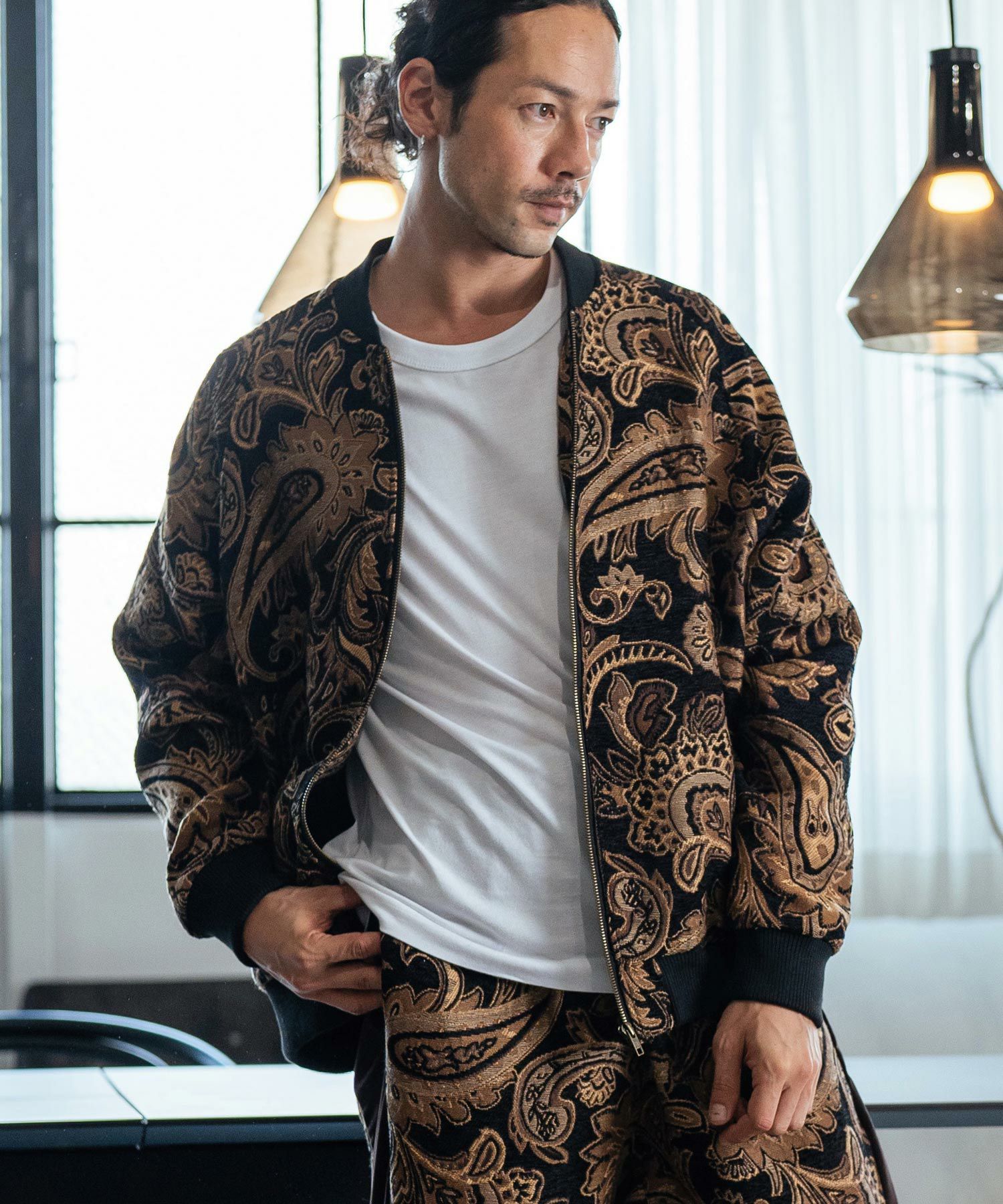 豊かな模様やテクスチャが特徴のゴブラン織り生地を採用したアウターです。