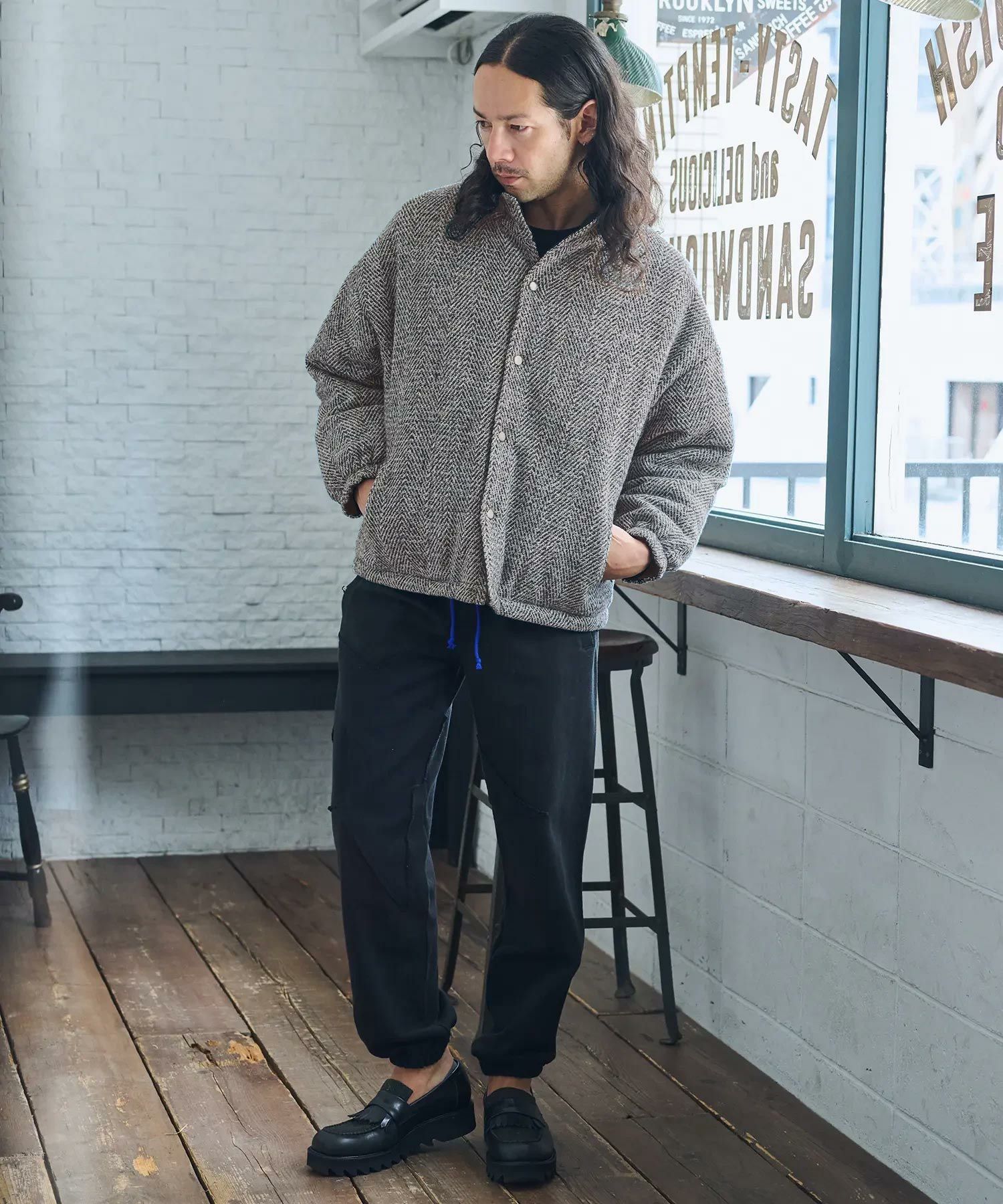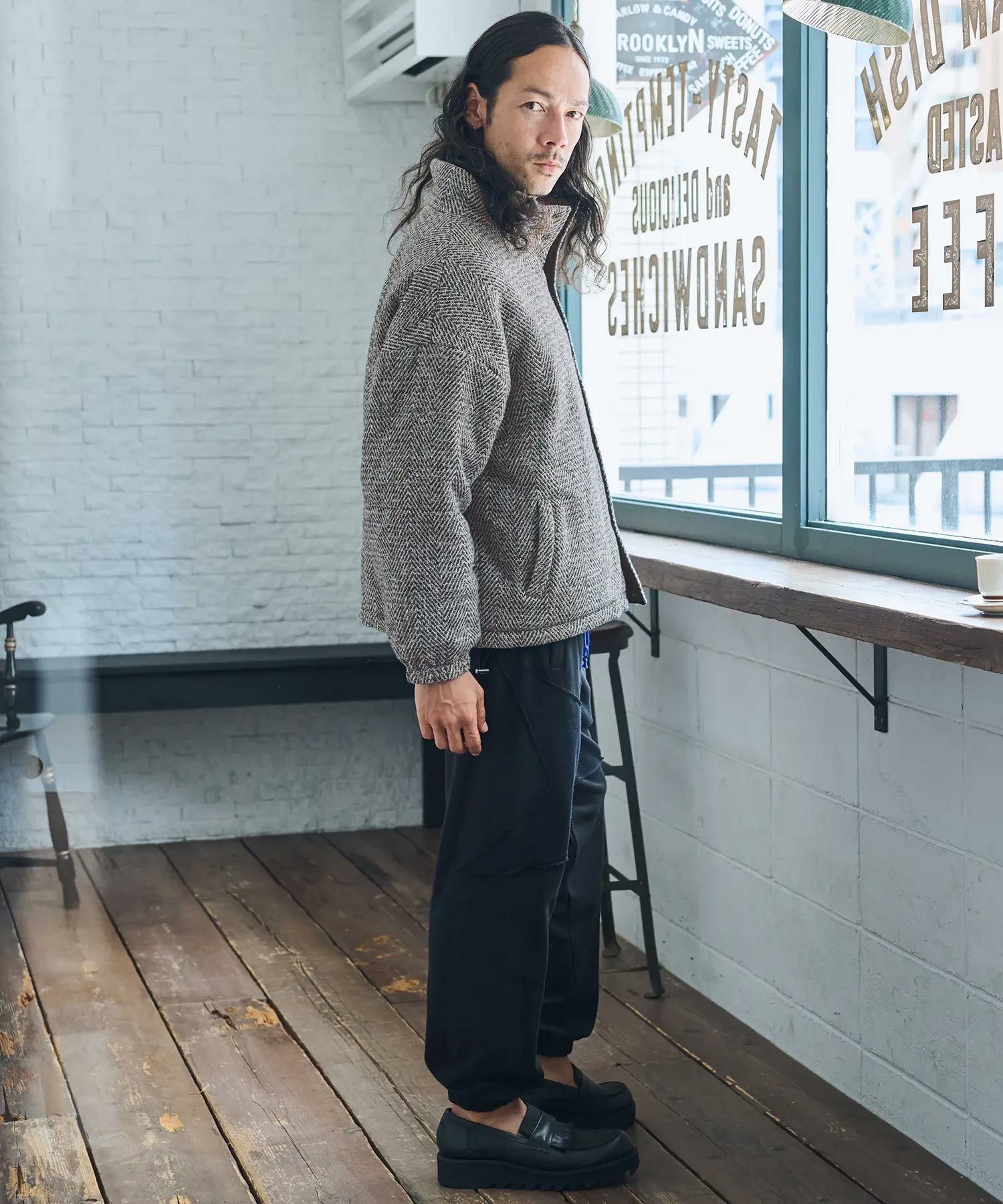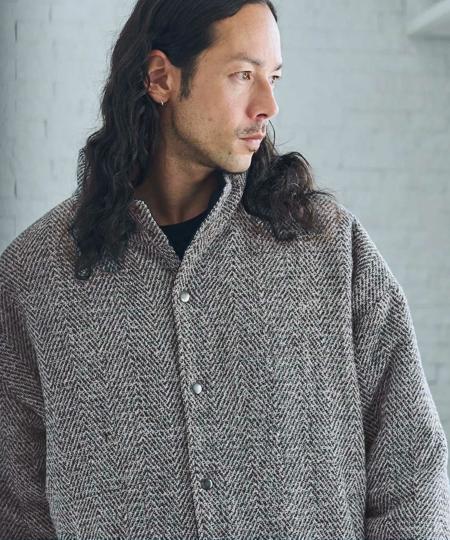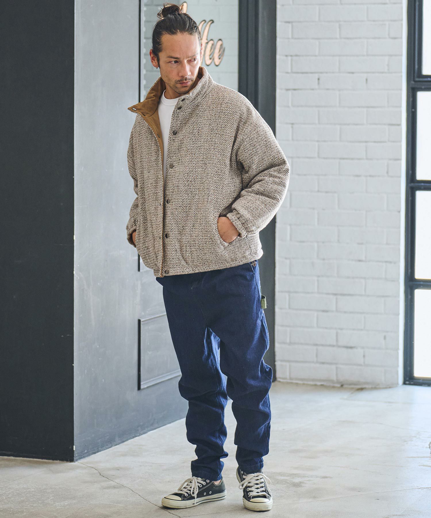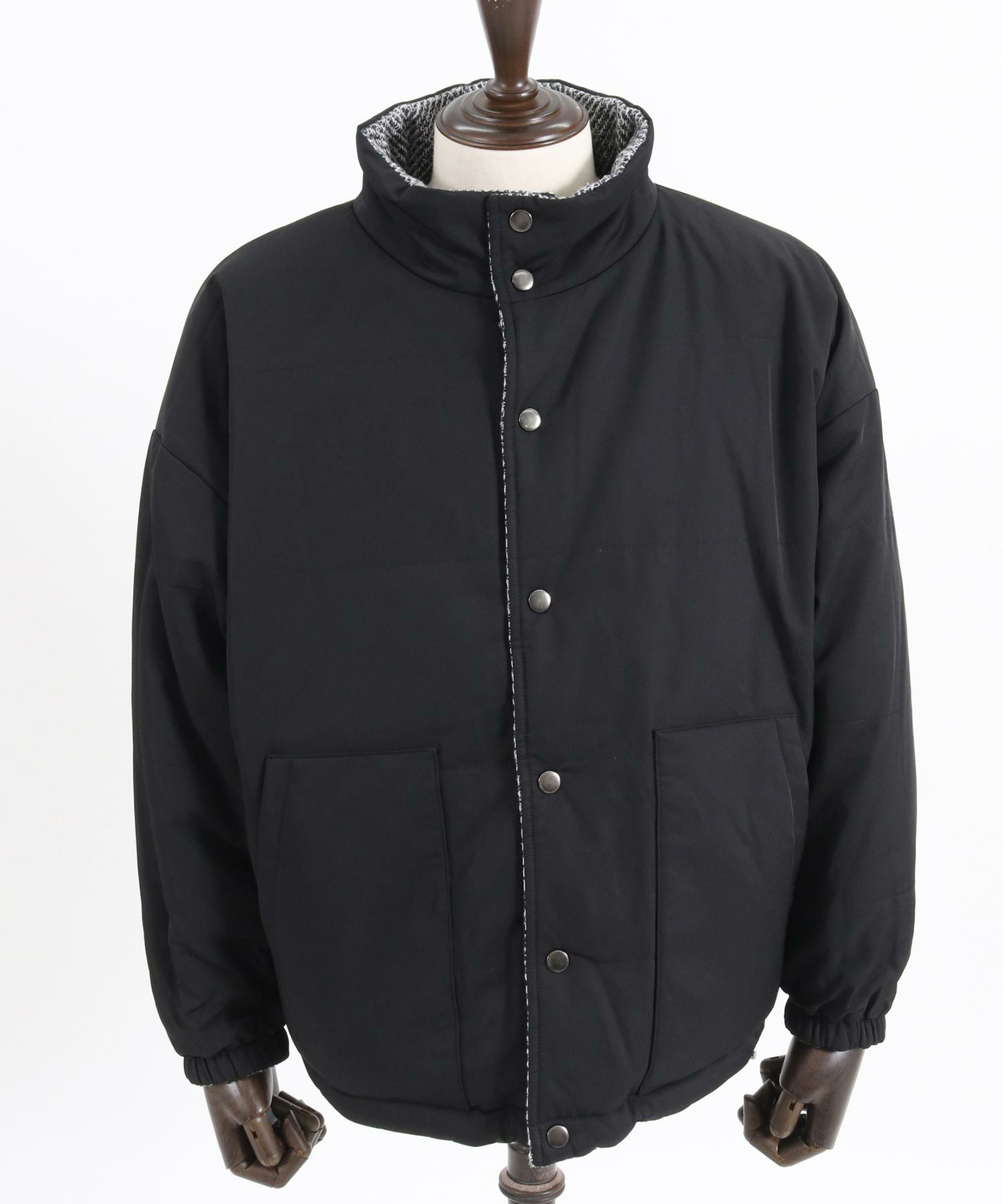 ツイード×ナイロンのリバーシブルデザイン。
