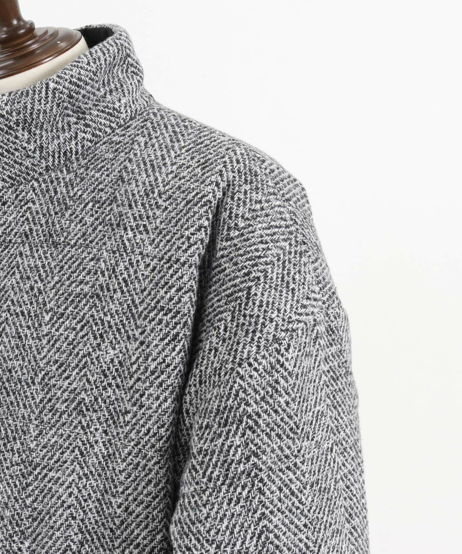 スタンドカラーのハイネックが顔回りをスッキリと見せてくれるデザイン。