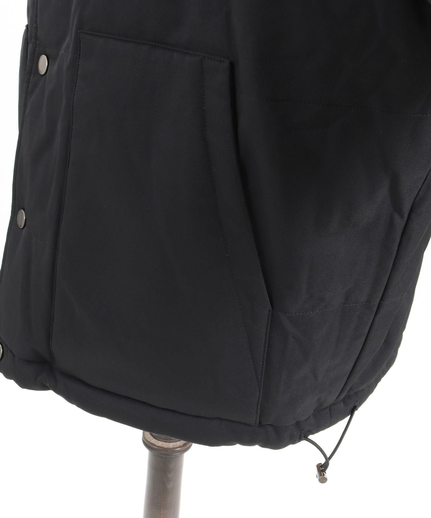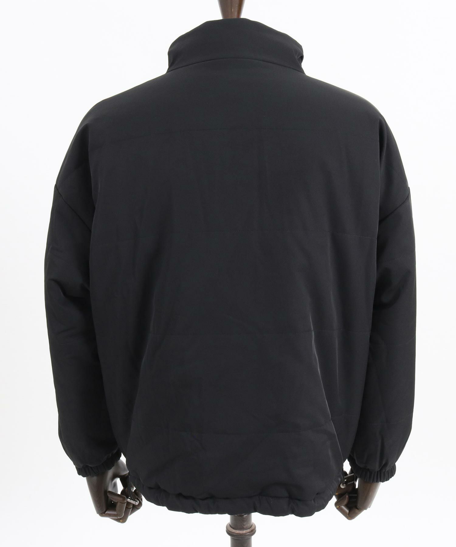 ドロップショルダーのスタンド中綿ブルゾン。