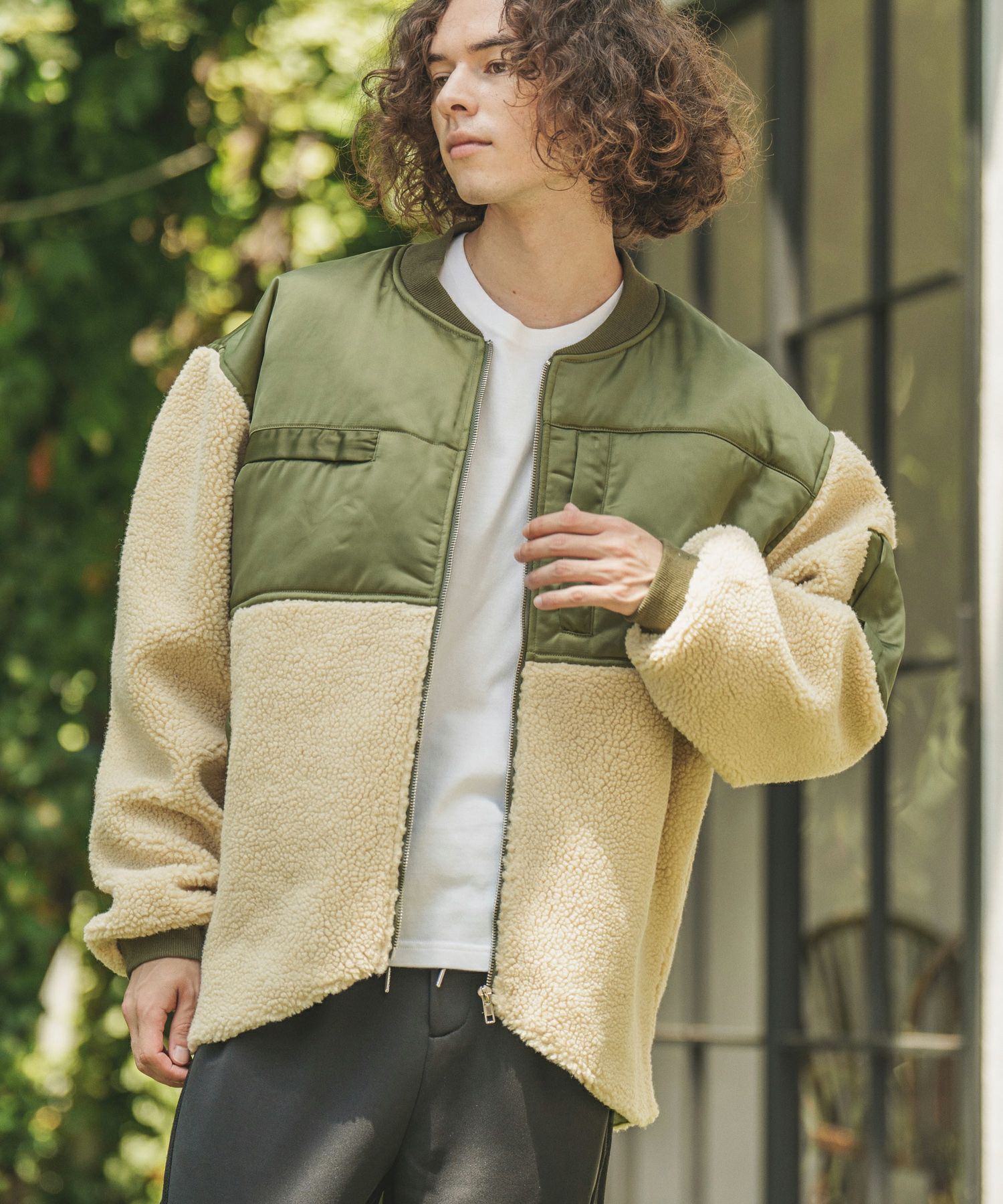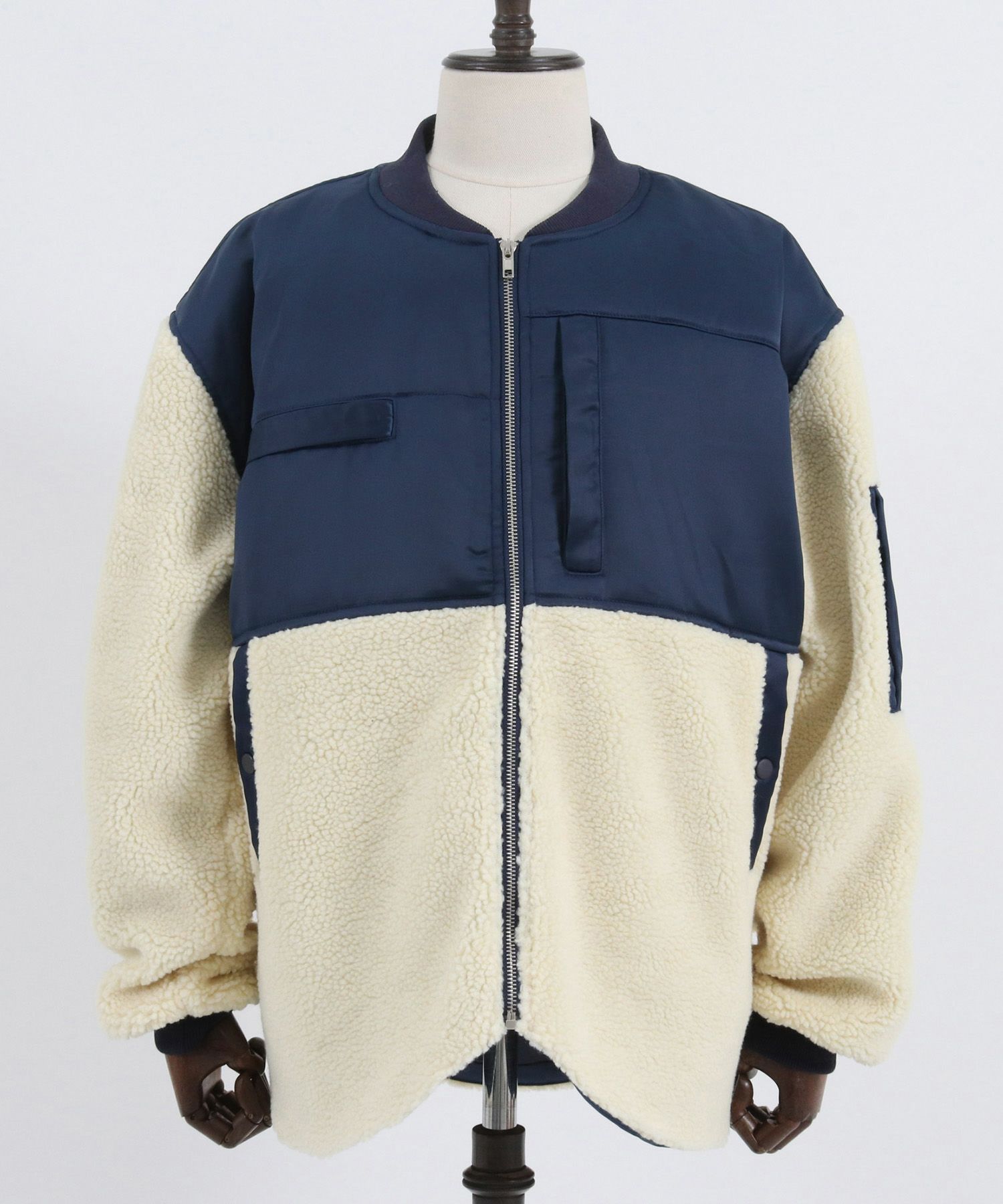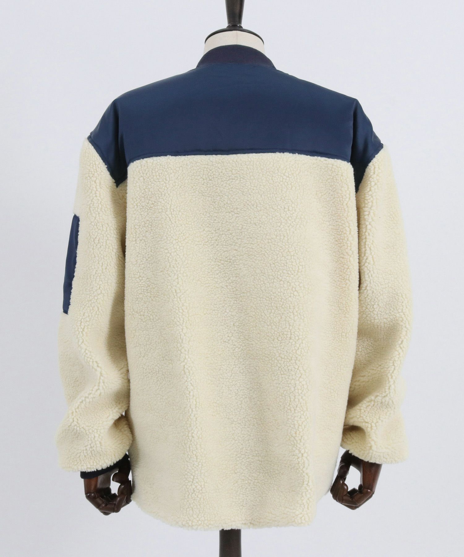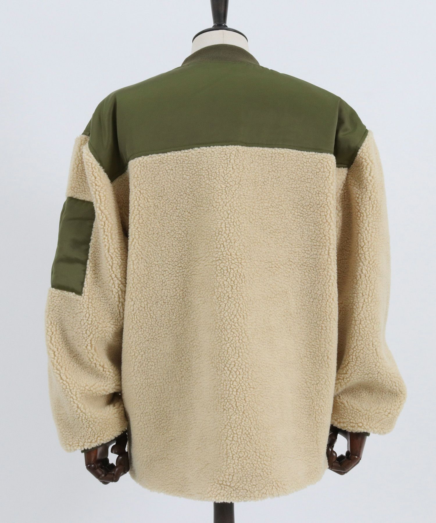 ミリタリージャケットをボア地で切り替え、見た目も暖かい一枚に仕上がりました。