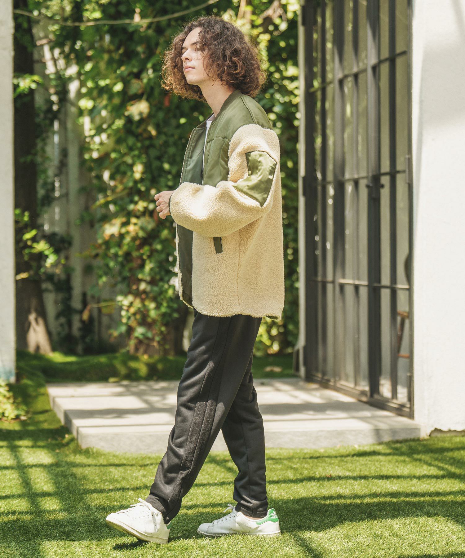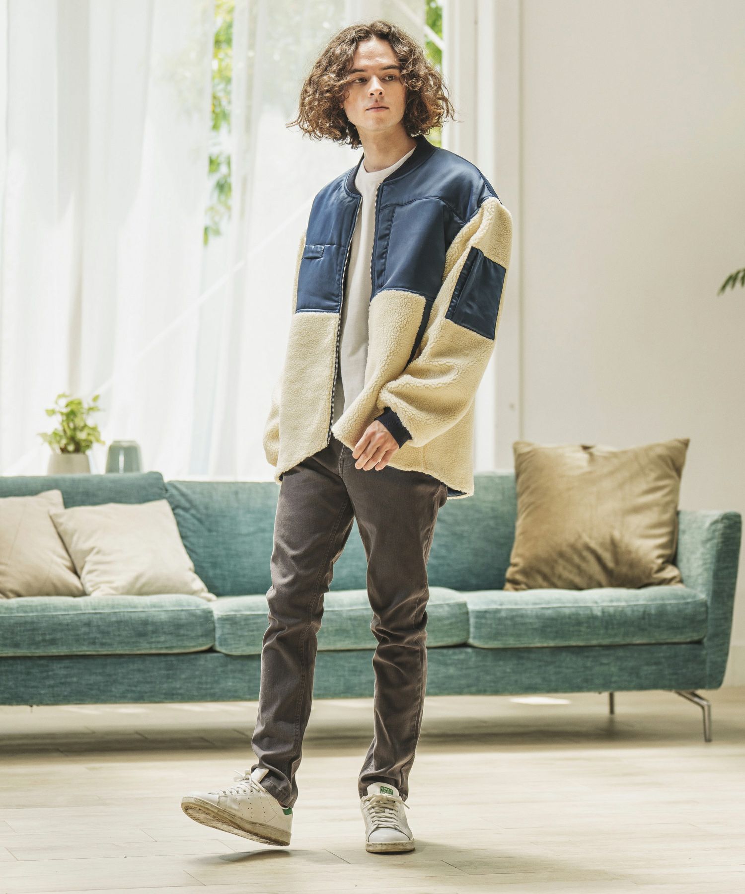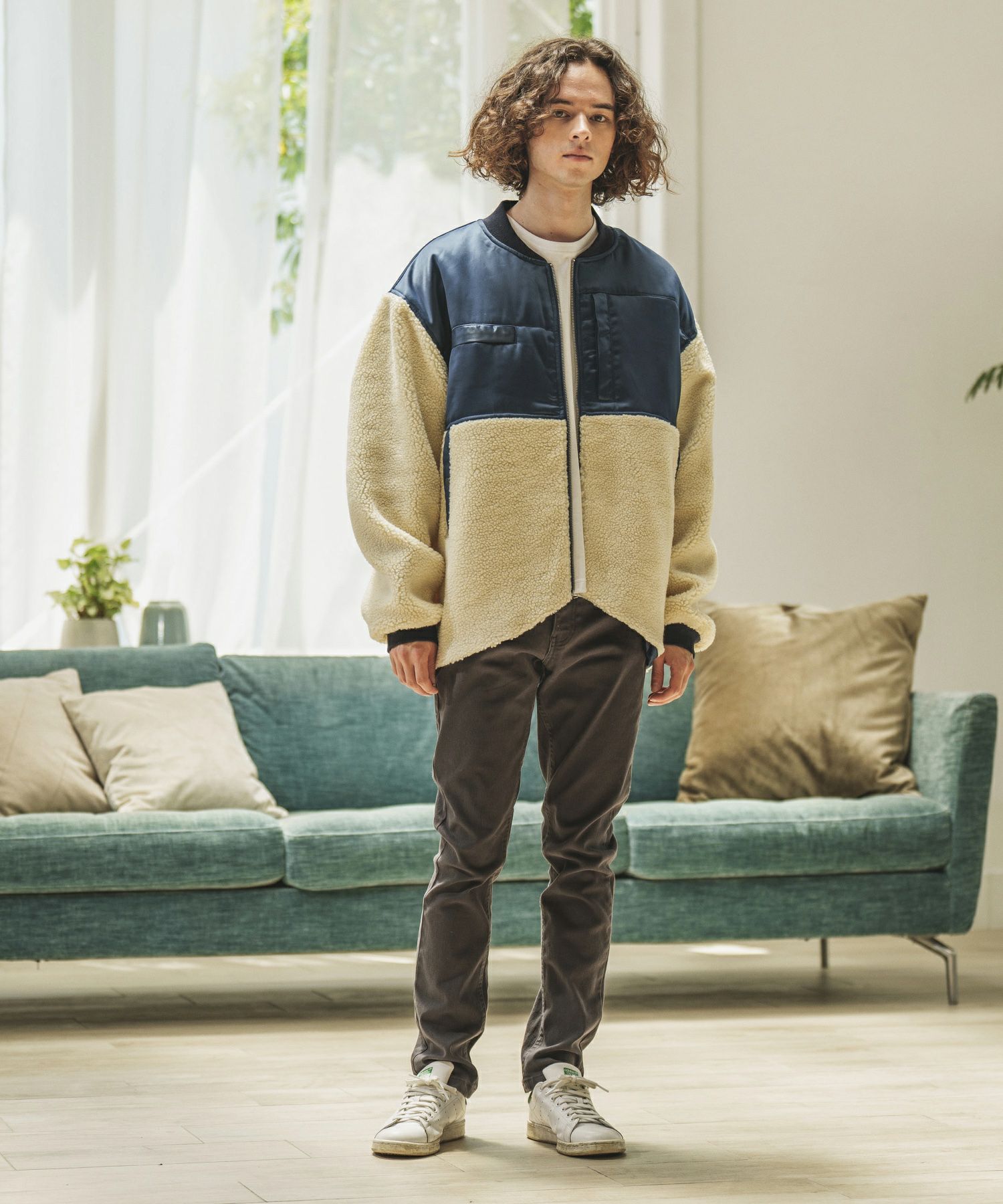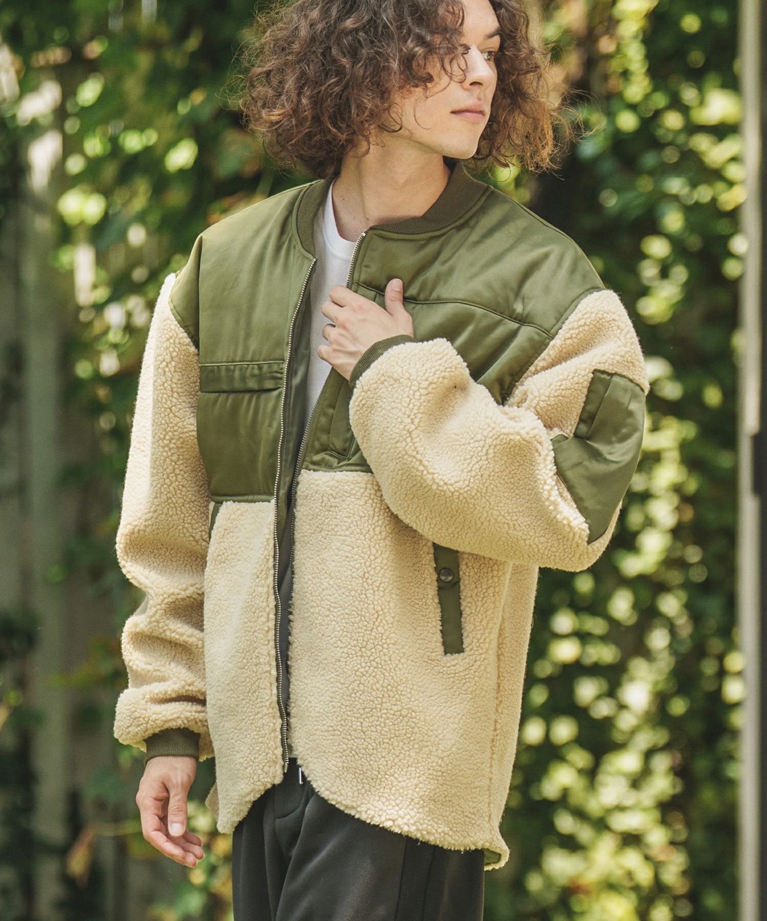 ミリタリージャケットをボア地で切り替え、見た目も暖かい一枚に仕上がりました。