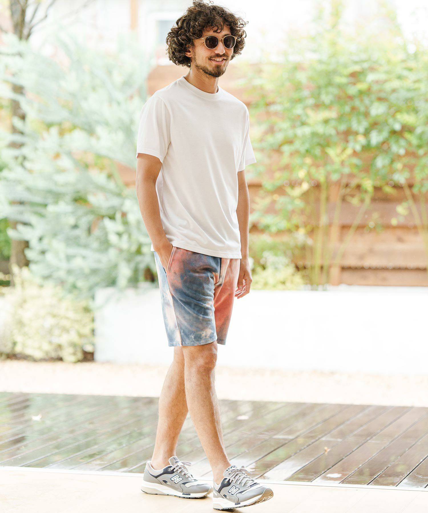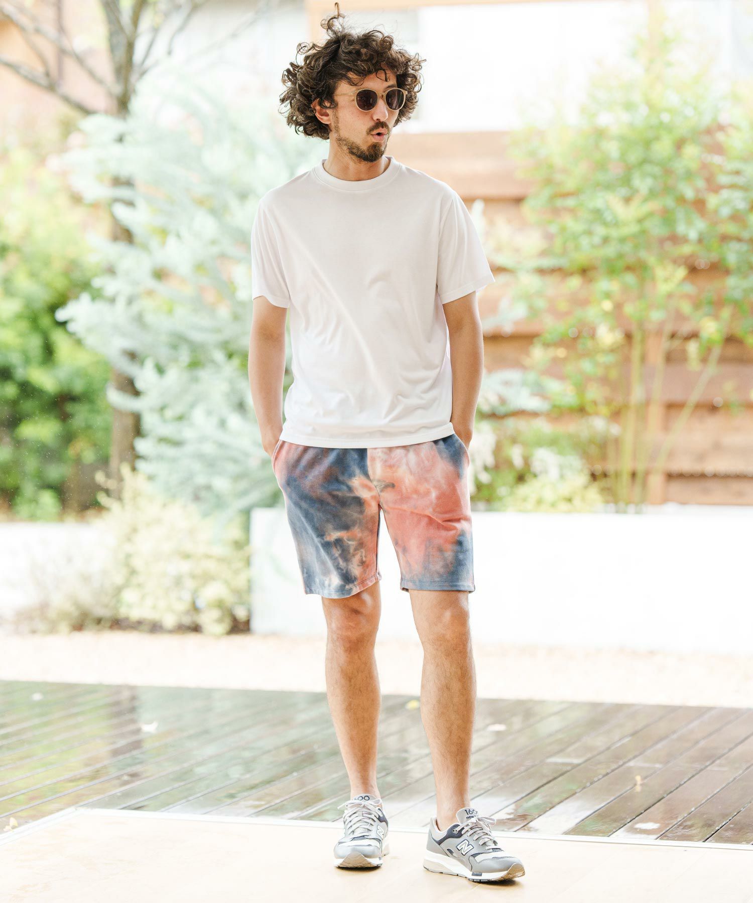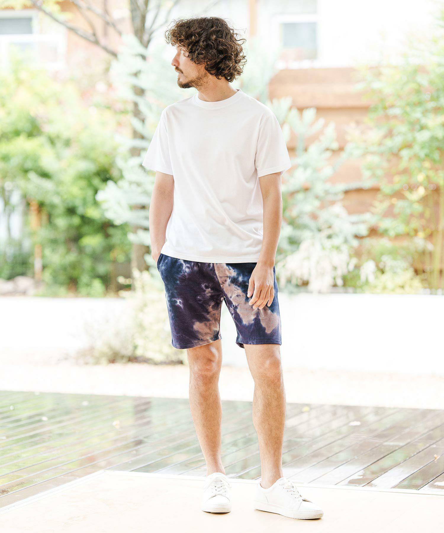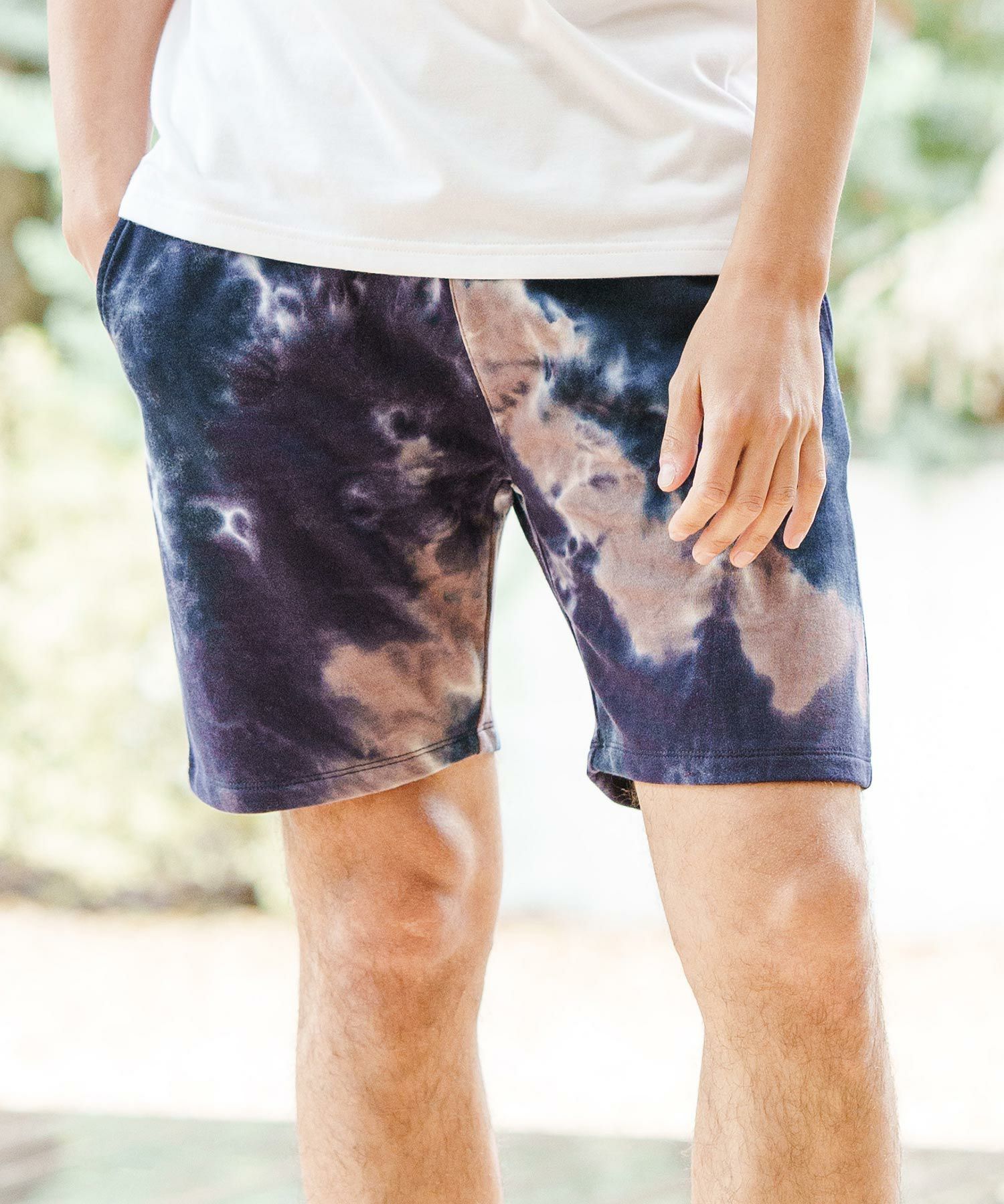 タイダイ染を施した裏毛スウェット生地を使用したショートパンツ、ポップな印象で夏のスタイリングにマッチする仕上がり、日々のスタイリングに彩りとアクセントをプラスしてくれます。