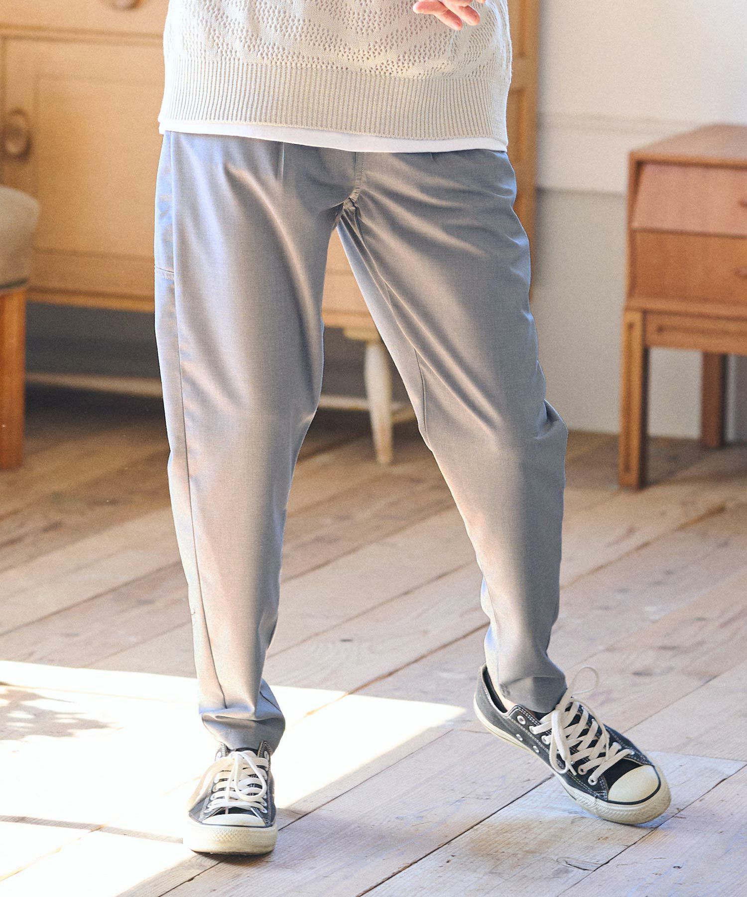 1タック入れた腰回りからキレイなテーパードラインを描いたシルエットは癖になる一本です。