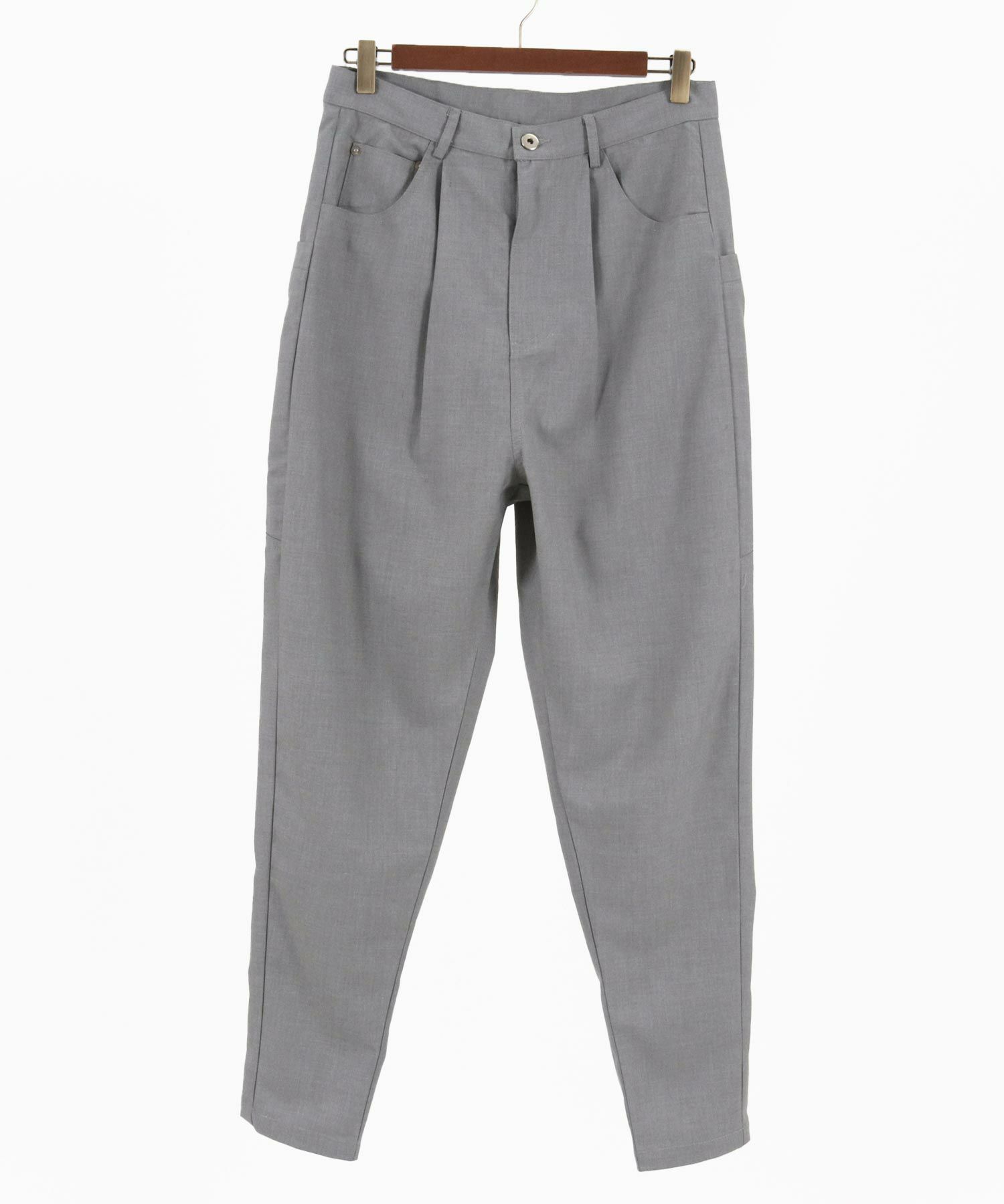 特徴的なバックポケットを擁した1タックテーパードパンツ。