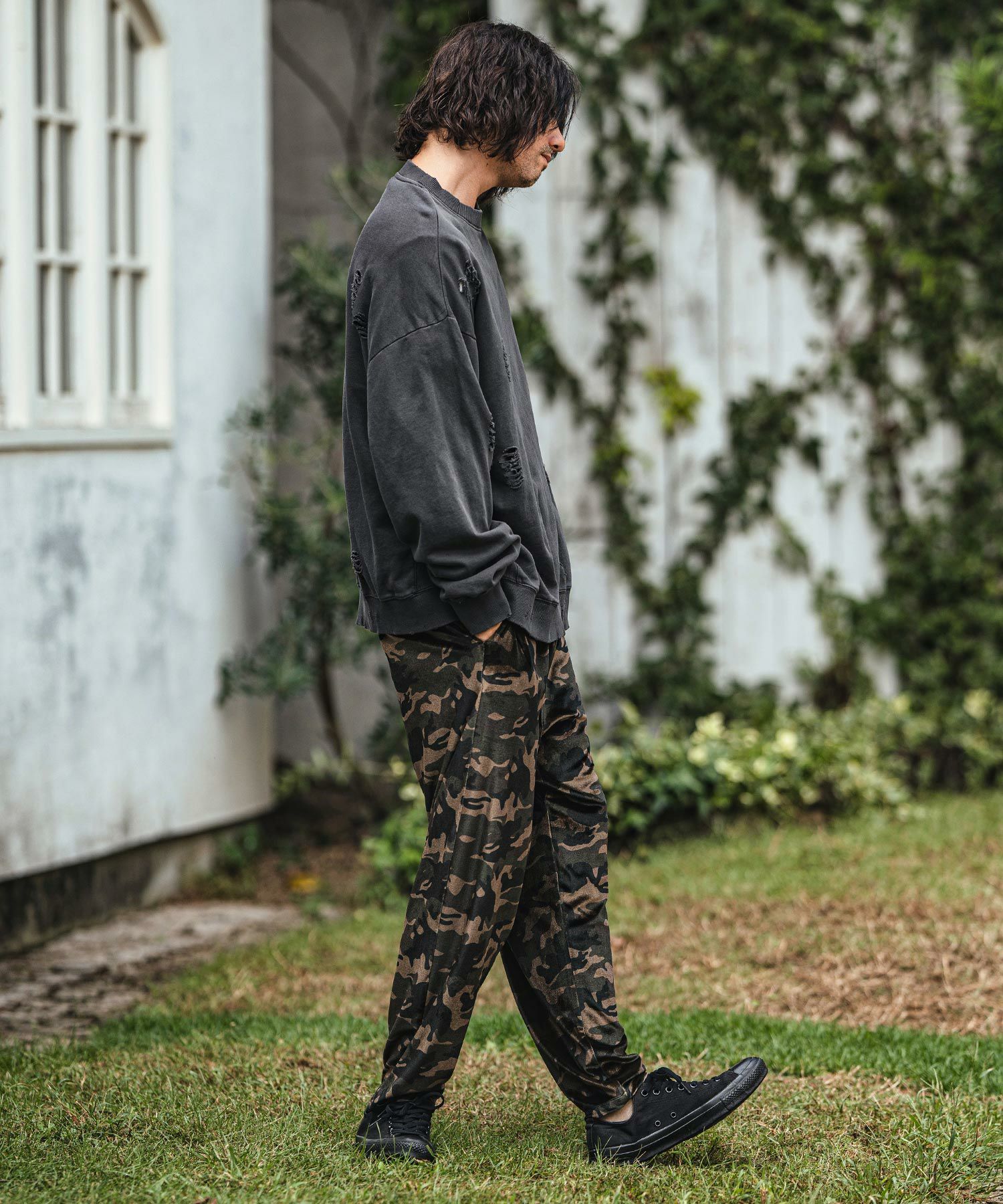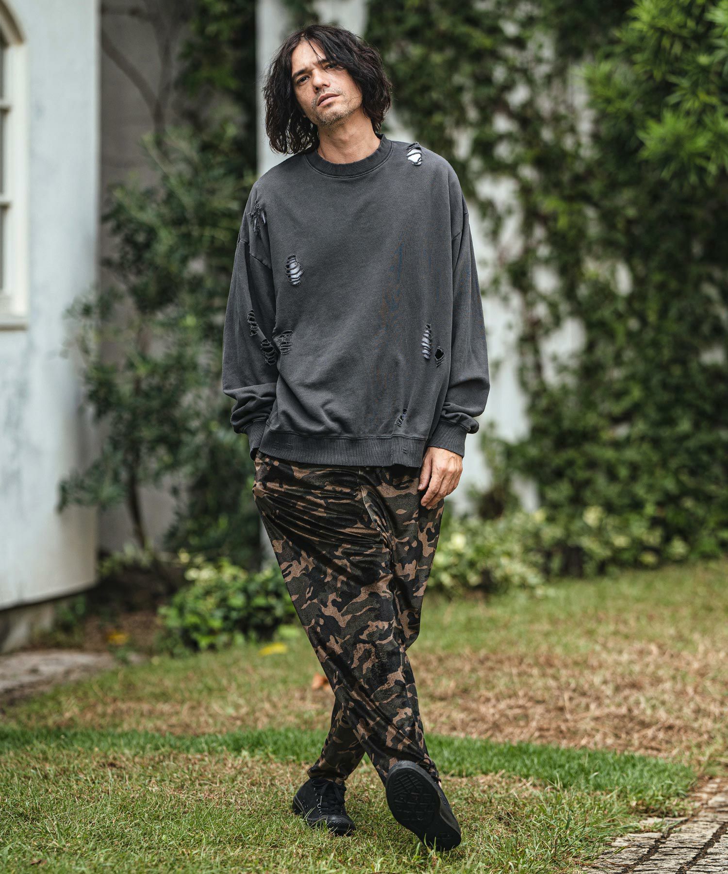 CAMBIO 30%OFF【CAMBIO(カンビオ)】裏毛ダメージクルーネックスウェット(M2414001-1CM)