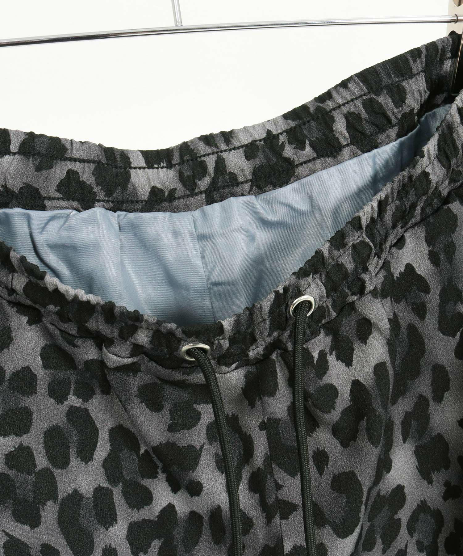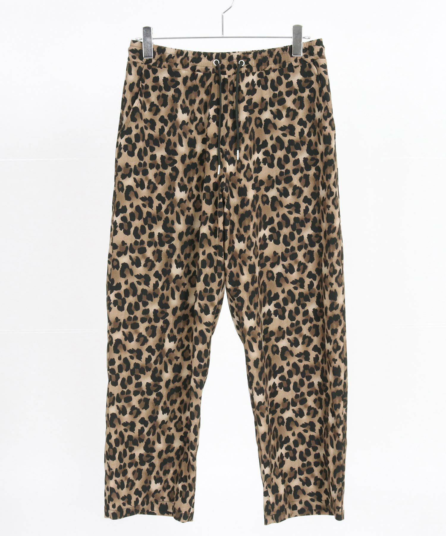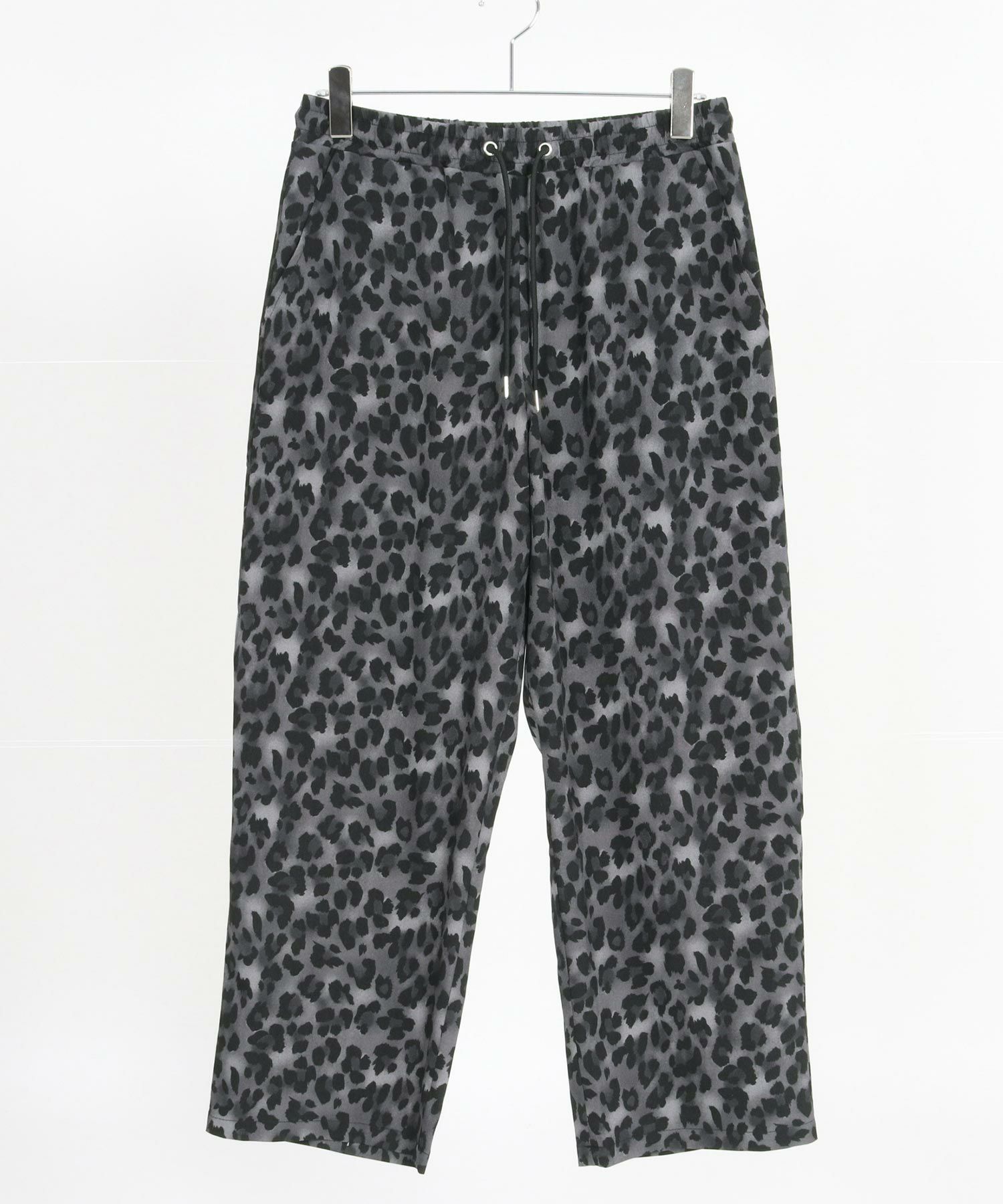 レオパードパターンの薄手のファブリックを使用したワイドストレートパンツです。