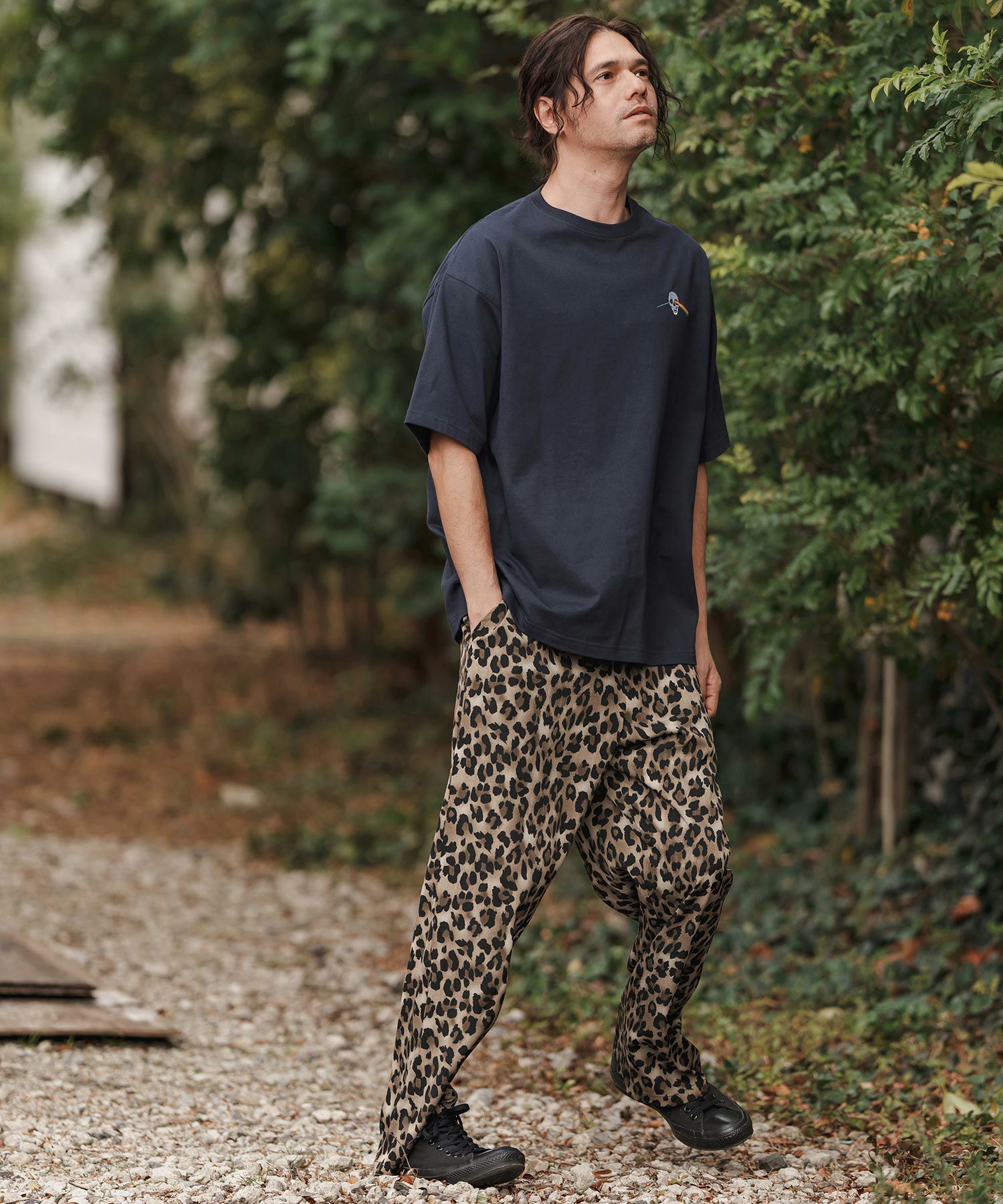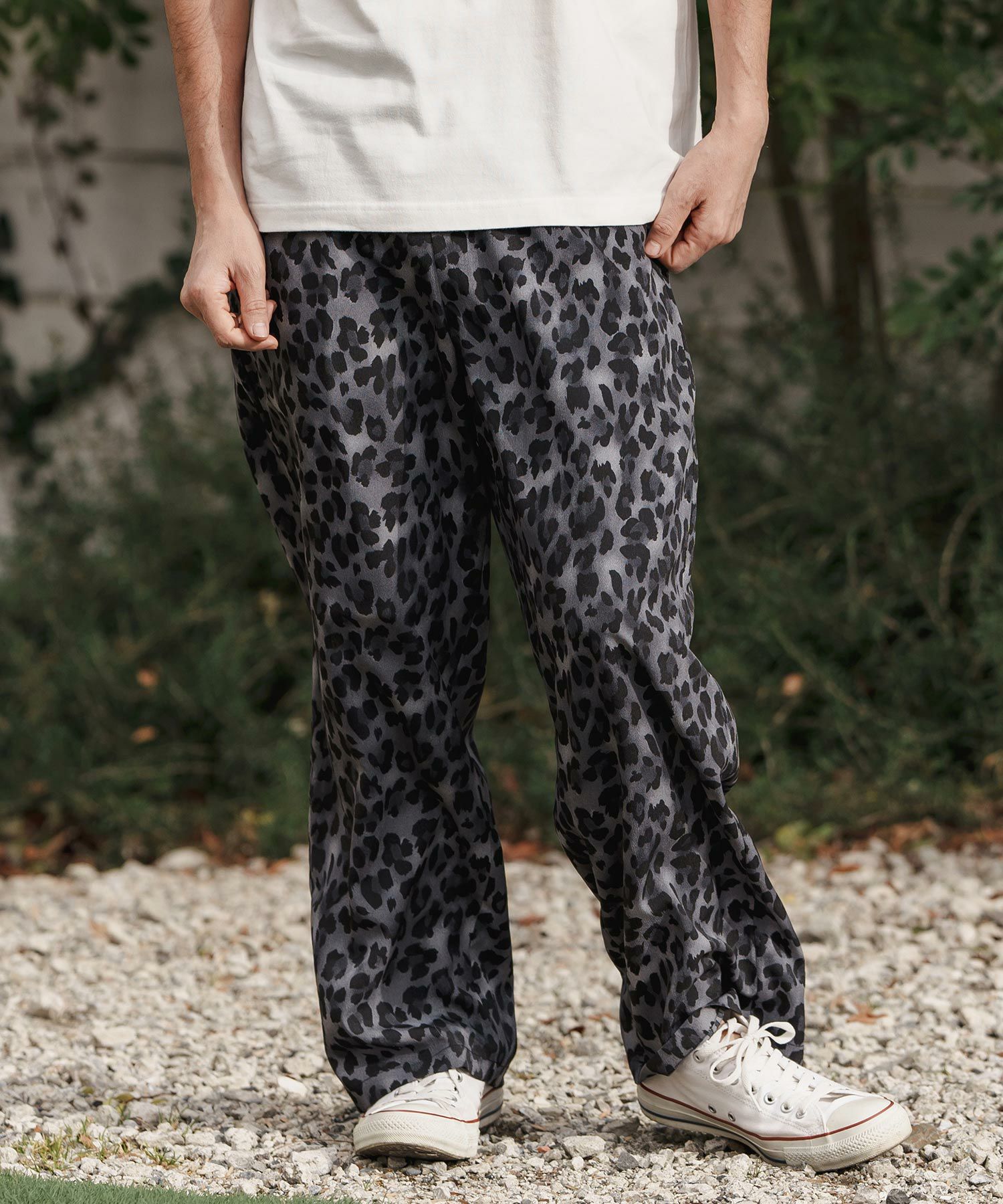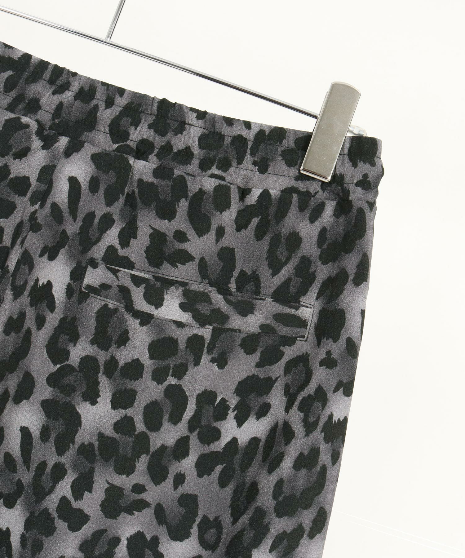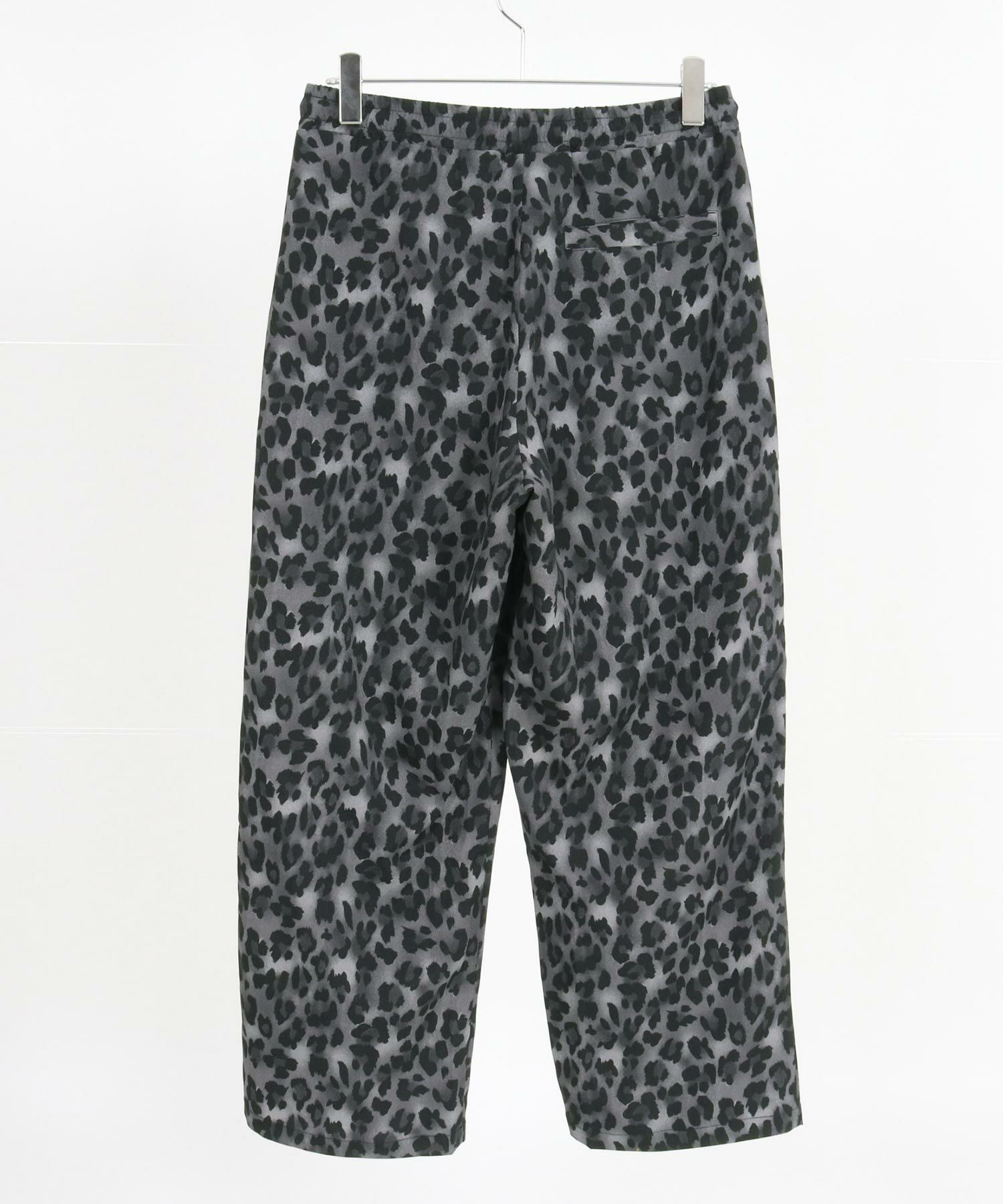レオパードパターンの薄手のファブリックを使用したワイドストレートパンツです。