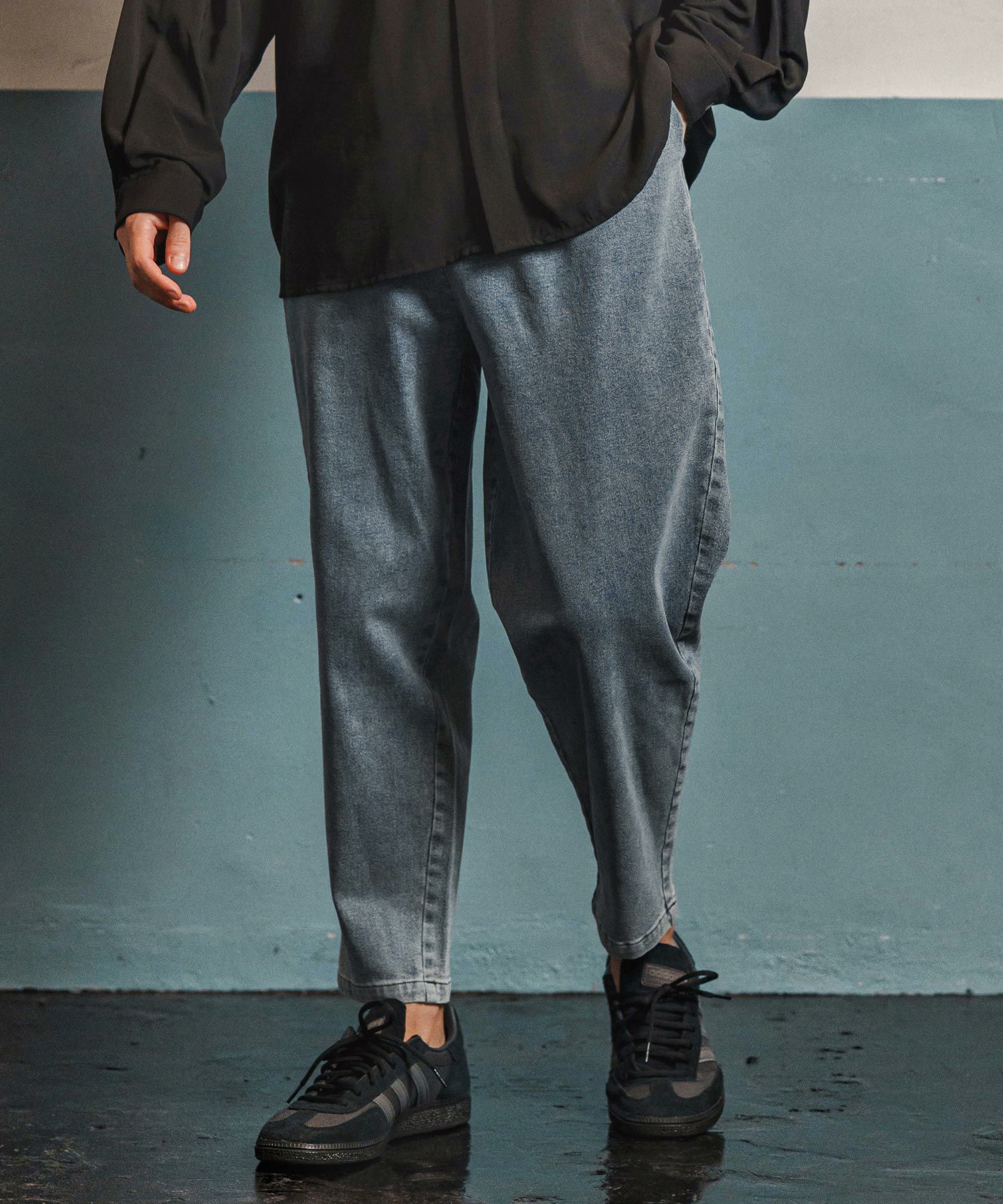 足元をすっきり見せながら、スニーカーやブーツとの相性も抜群。