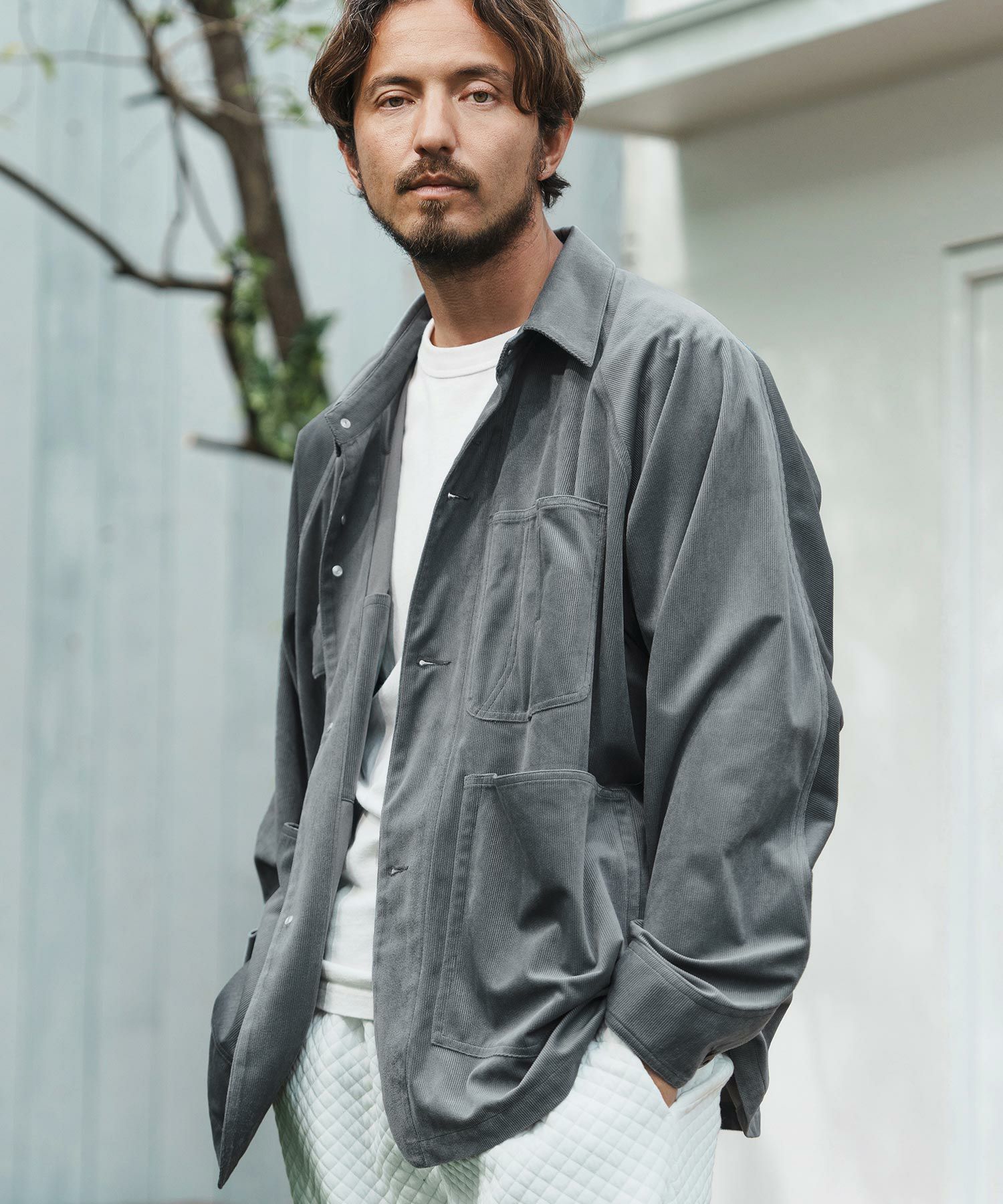 細畝コーデュロイ生地を使用したシャツジャケット。