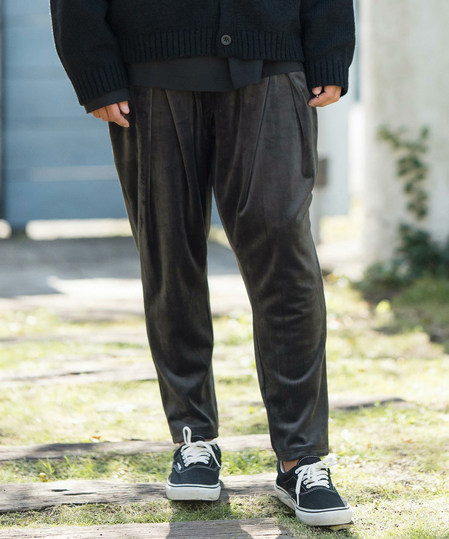 シルエットは定番的な股上寸法設定より少し長くしたソフトなサルエル感覚と