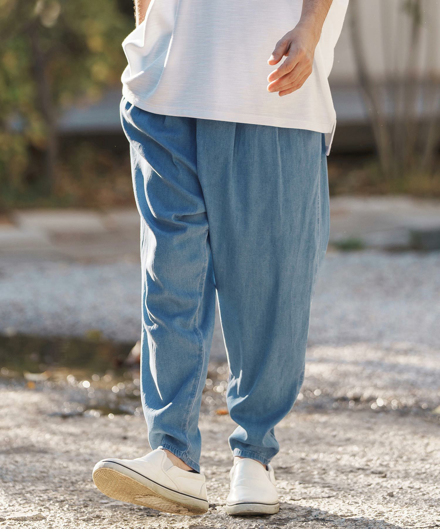 インディゴ染テンセルを使用したリラックスシルエットのパンツです。