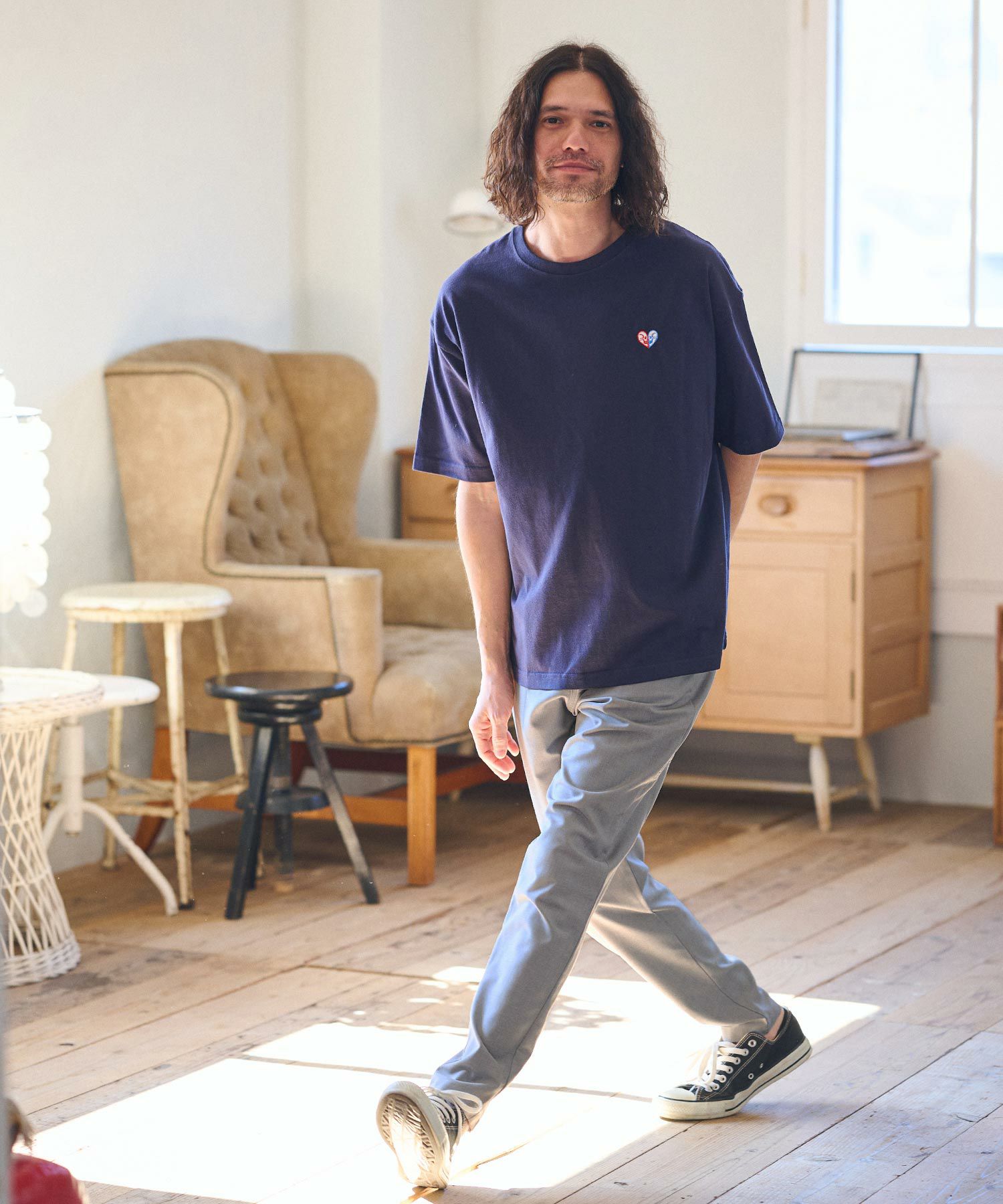 175cm B90-W73-H89 靴26.5cmのモデルがSサイズを着用。