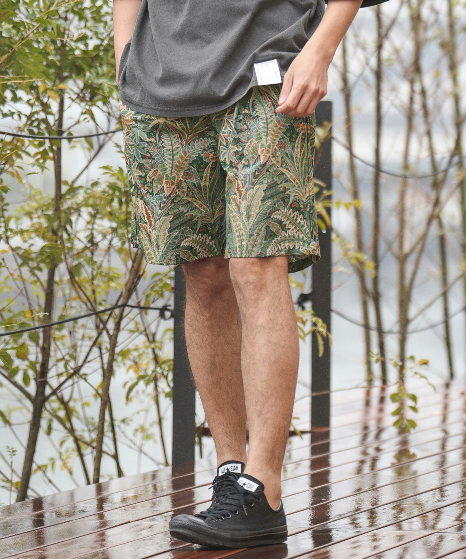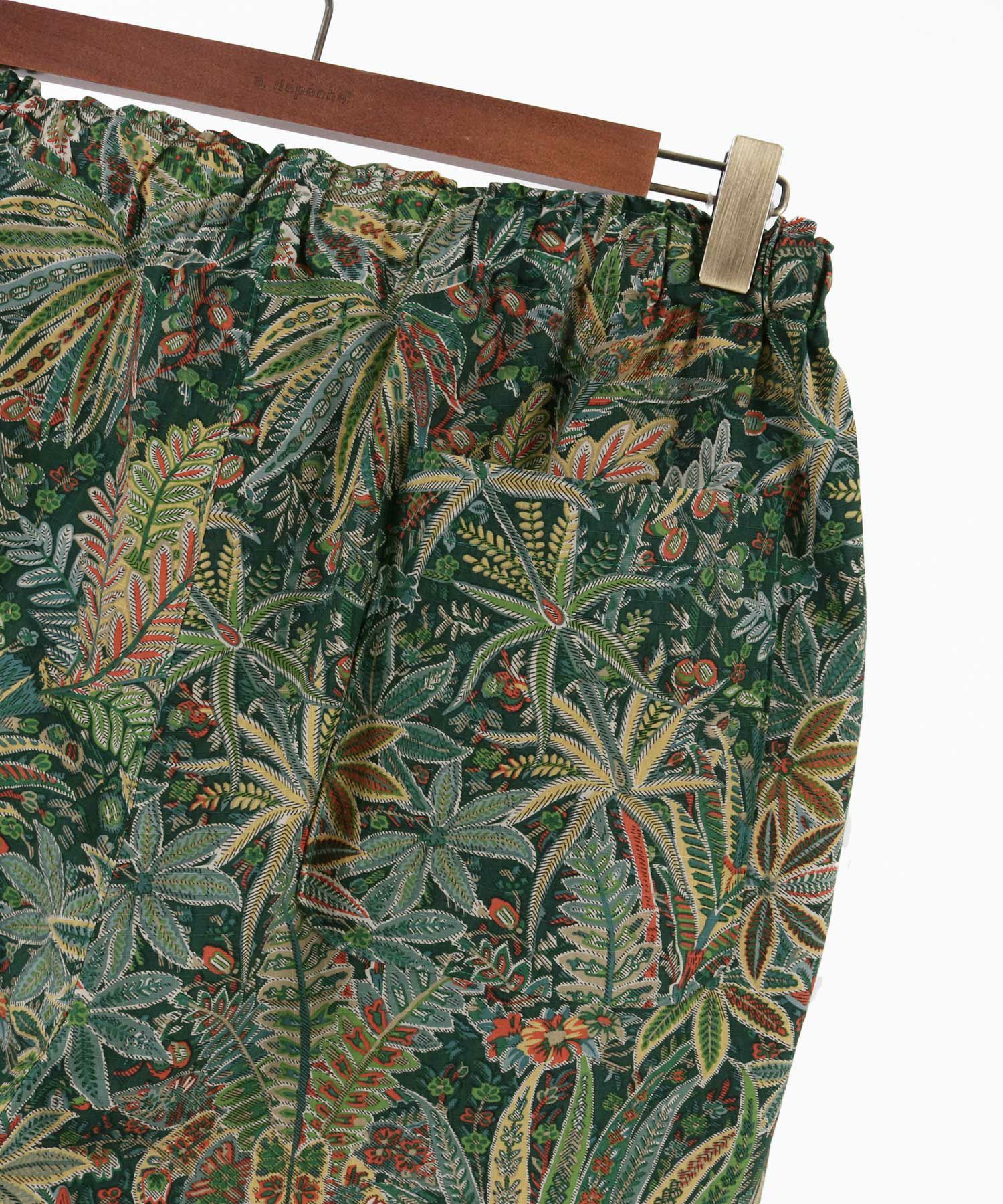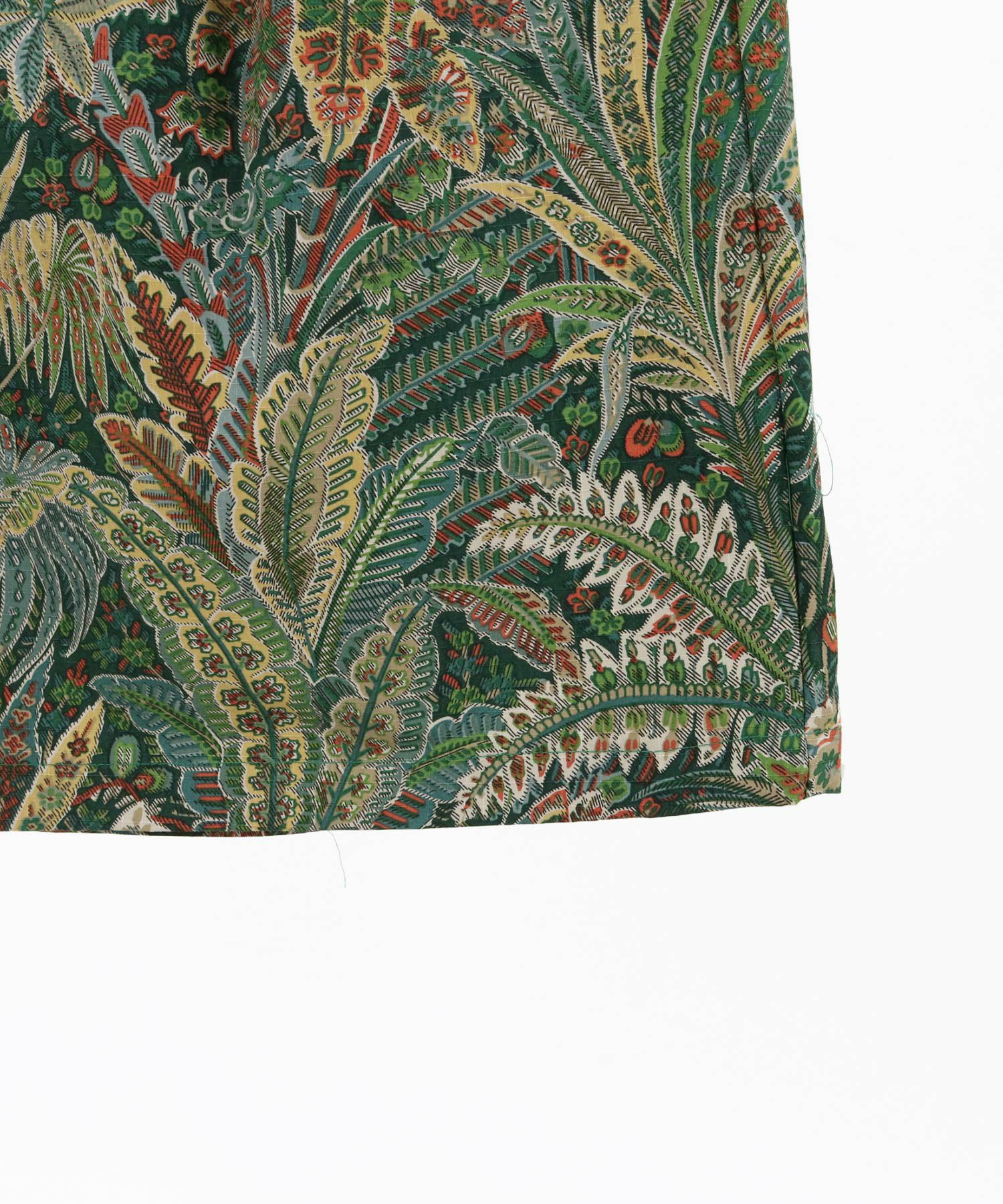 軽く丈夫なリップストップ地をベースにボタニカル柄を構成。