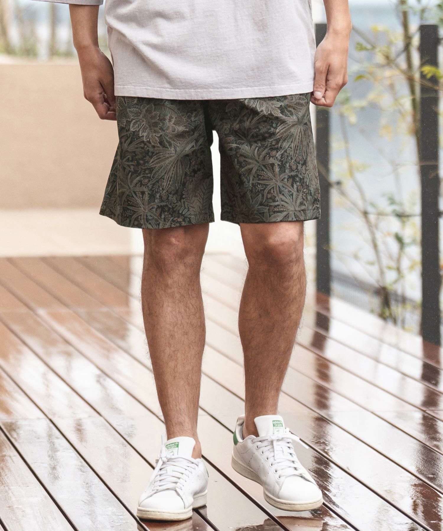 イギリスの生地ブランドLIBERTYと日本No1の柄生地メーカーHOKKOHのコラボ生地を使用したボタニカル柄ショートパンツ。