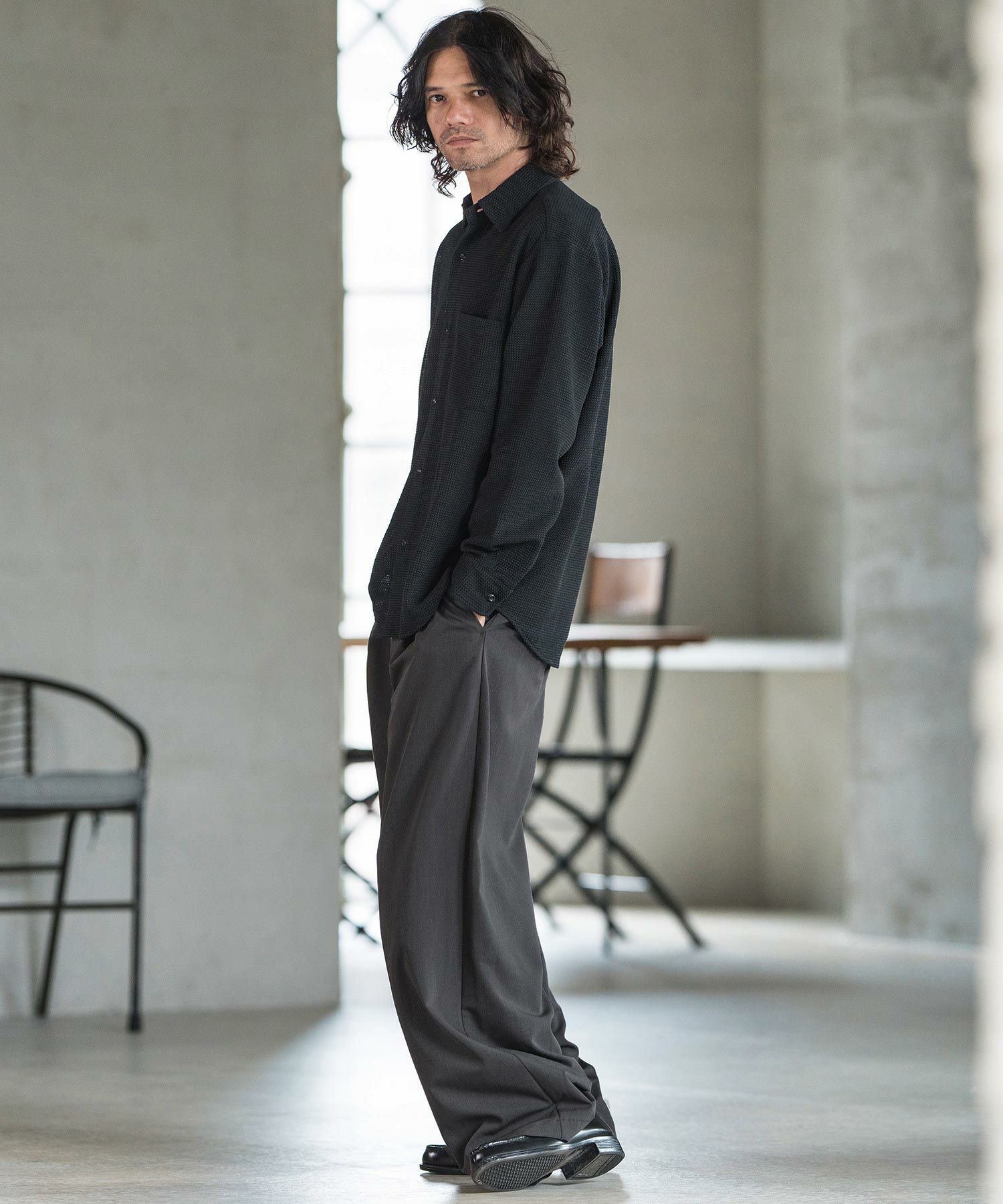 TRならではの落ち感やドレープ感が歩くたびに感じられる一本です。