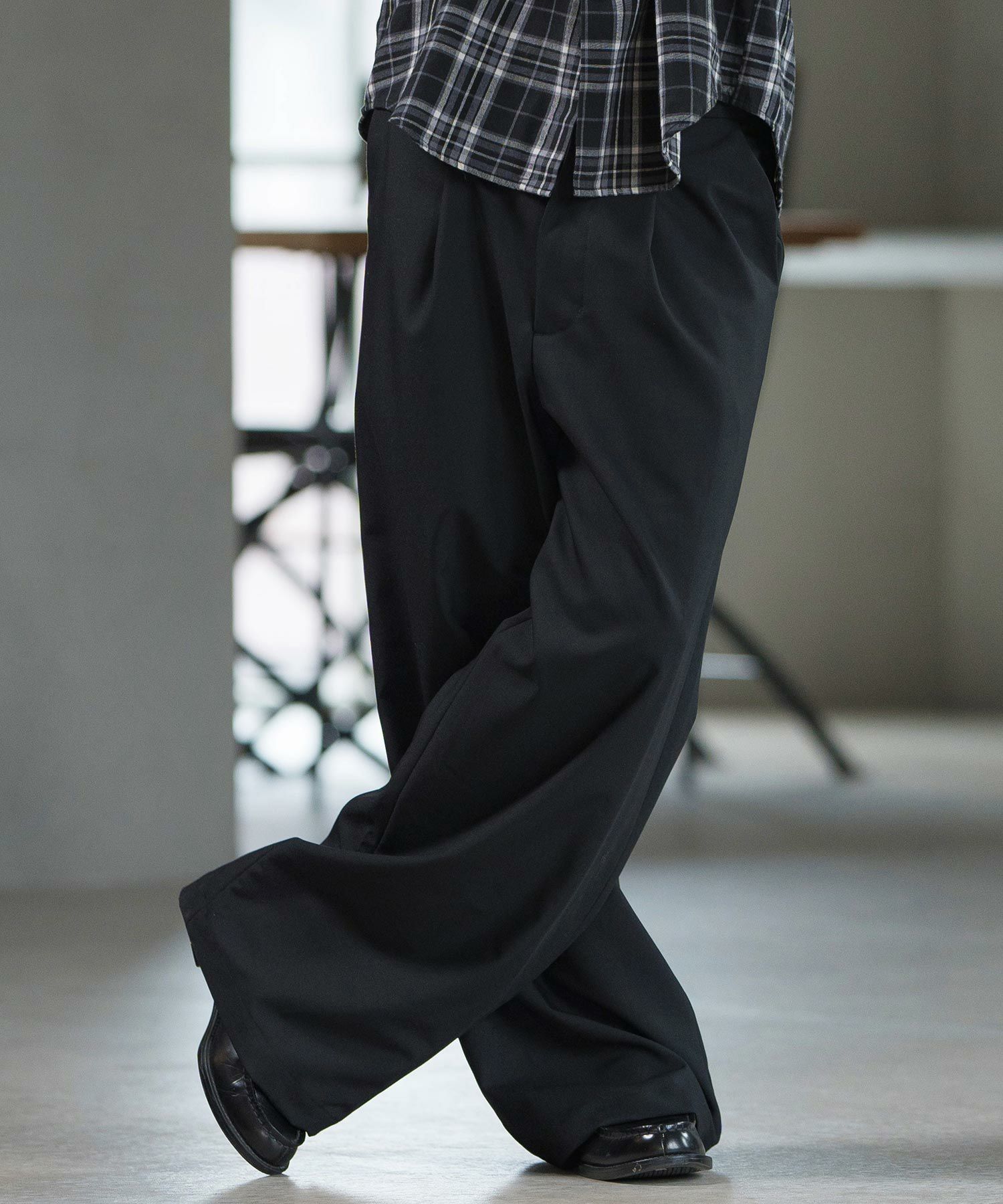 1タック入りワイドトラウザーズ。