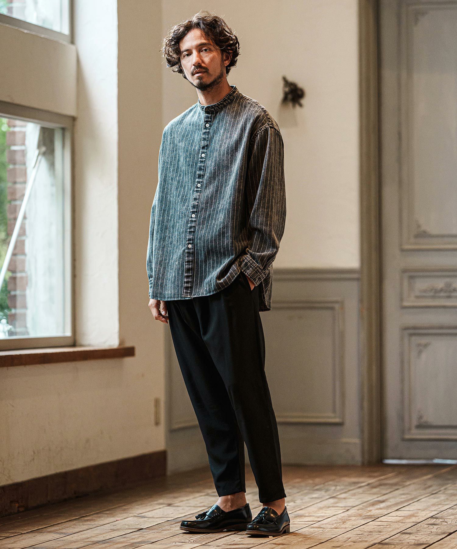CAMBIO 【CAMBIO(カンビオ)】Stripe Denim Hard Chemical Wash Band Collar Shirts バンドカラーシャツ(MIU-251-004) ¥ 13,200 税込 詳細を見る お気に入りに登録する