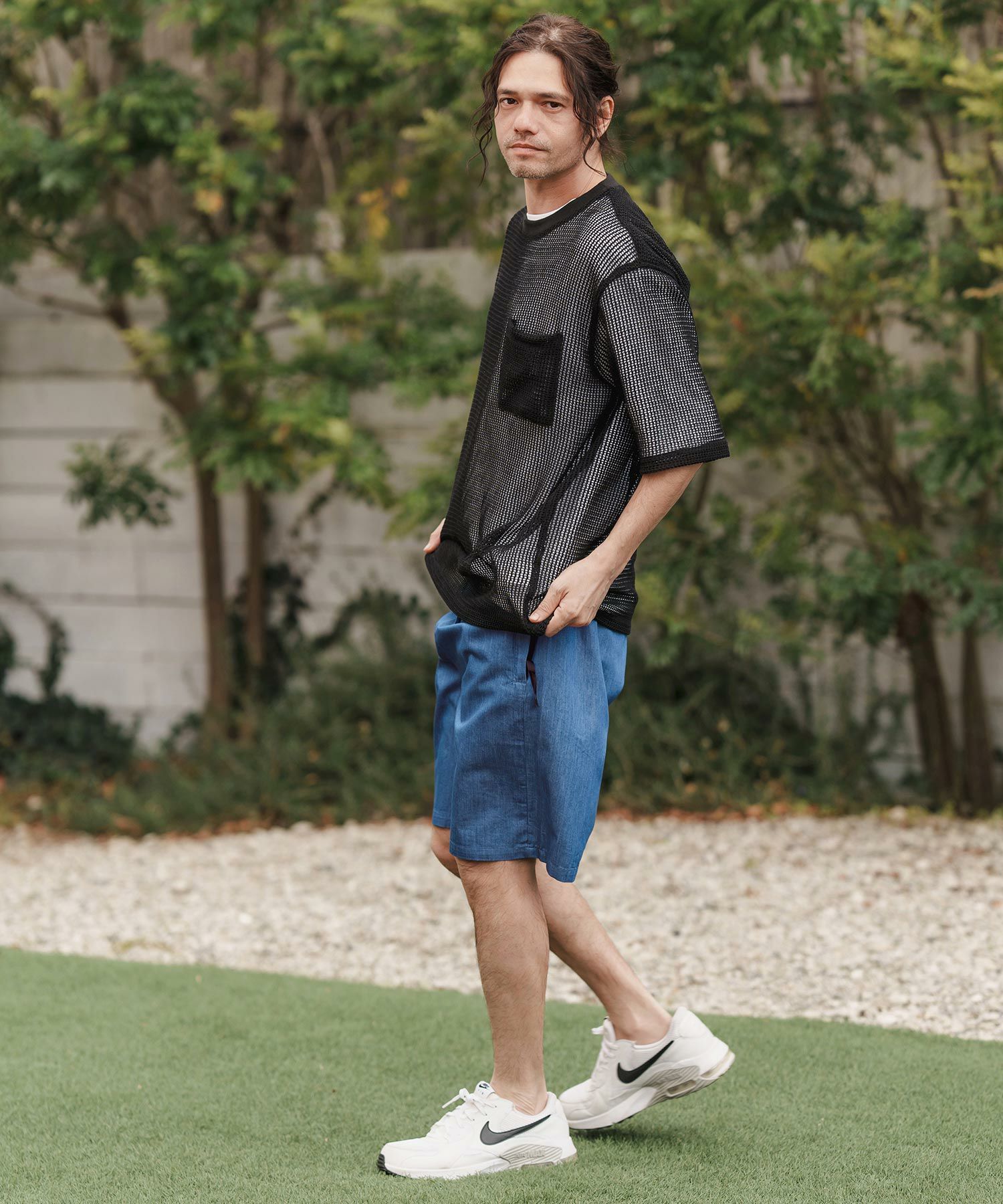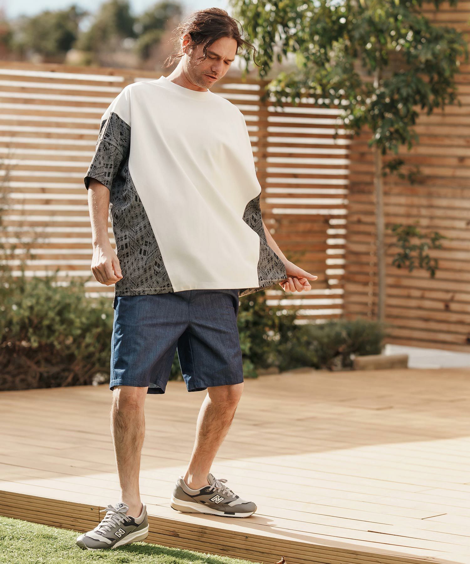 CAMBIO 50%OFF【CAMBIO(カンビオ)】ドライニットミニ布帛メッシュTシャツ(CA01-53119)