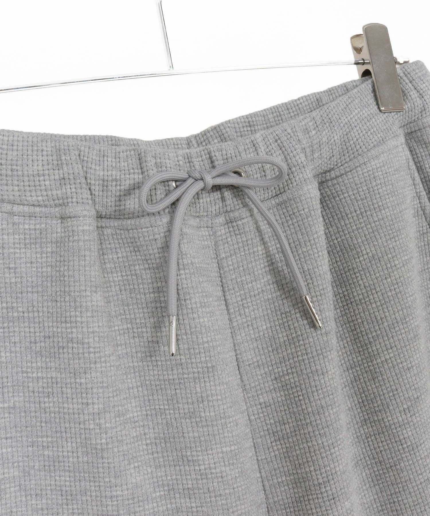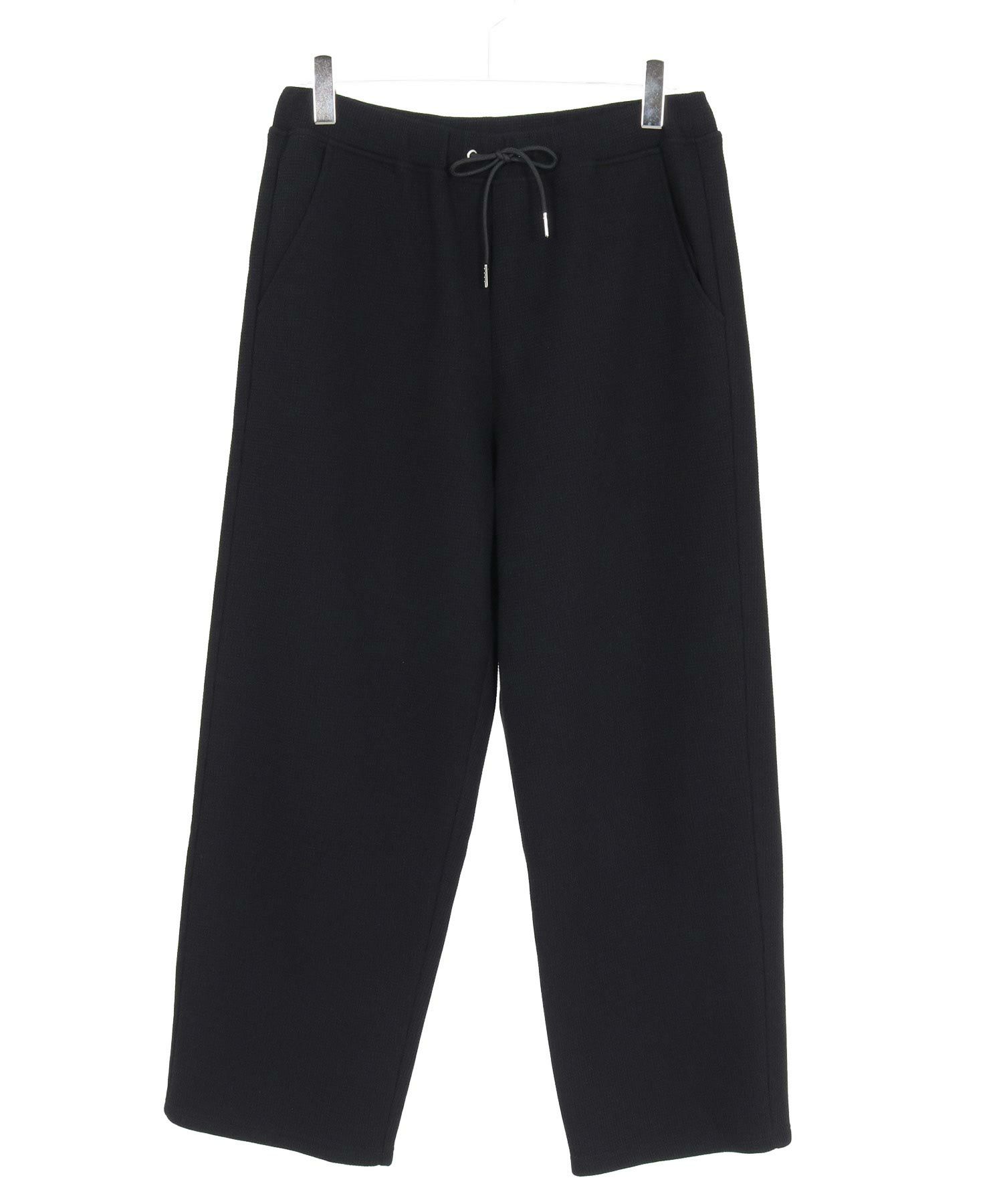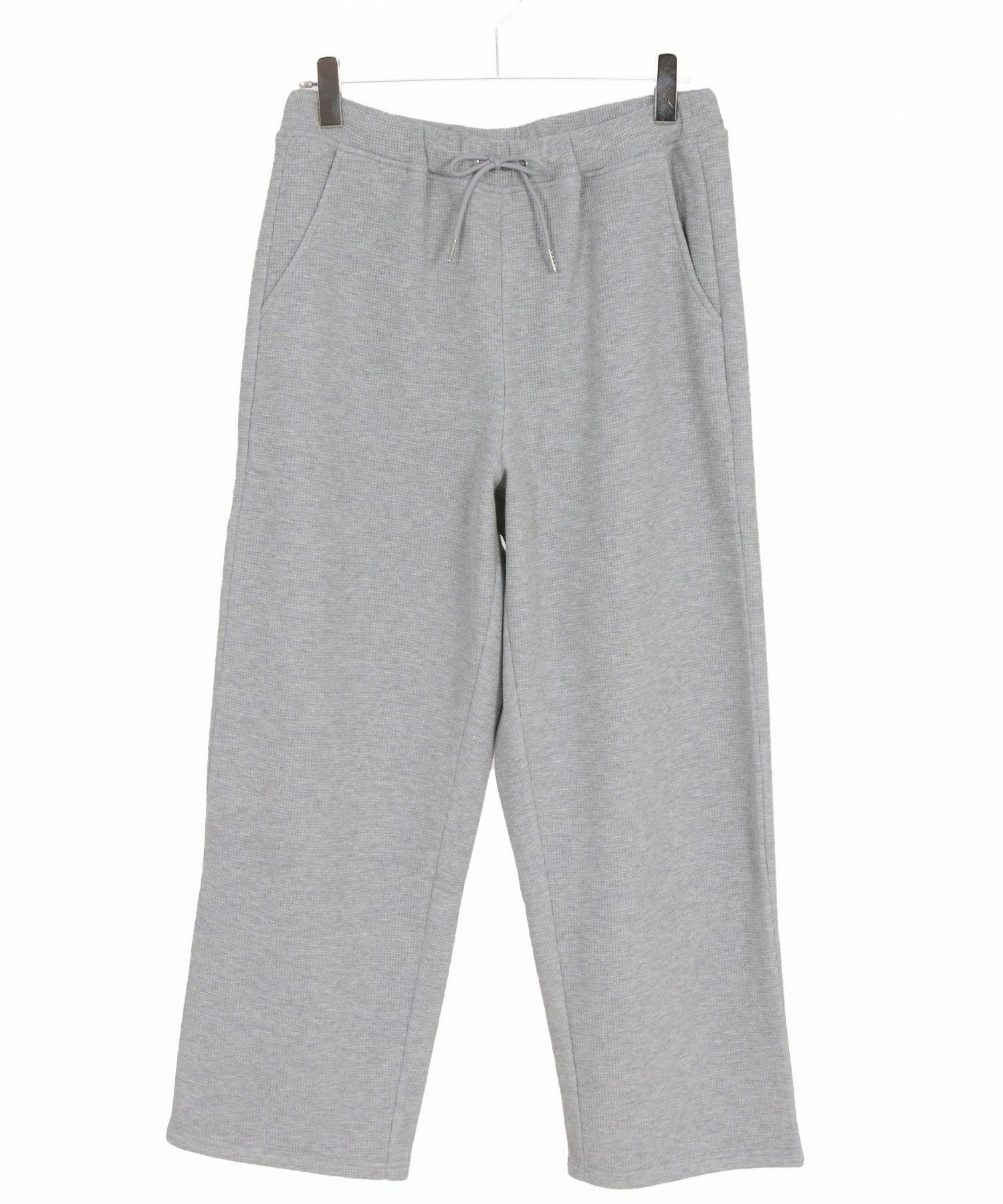 裏面にシャギー素材をボンディングしたワッフルカットソーのワイドストレートパンツ。