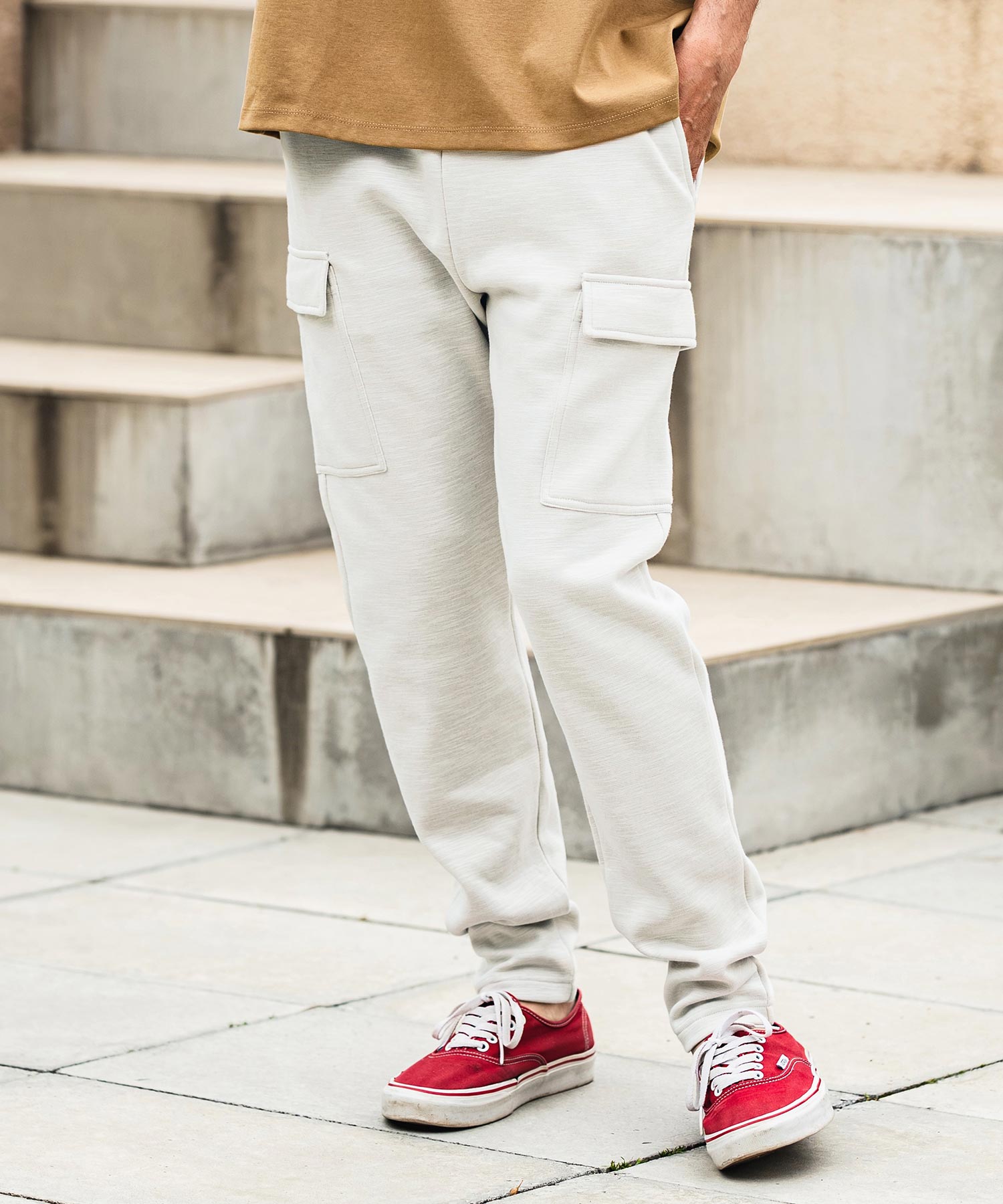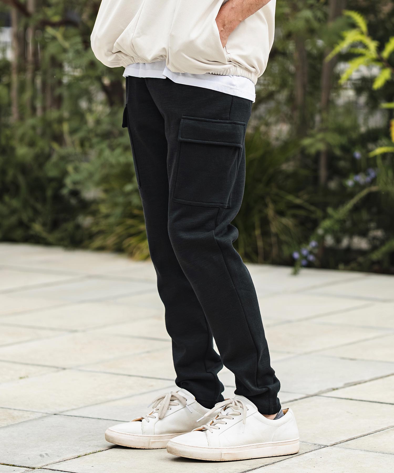 杢感と程よいハリと柔らかさを兼ね備えた素材を使用したカーゴスウェットパンツ。