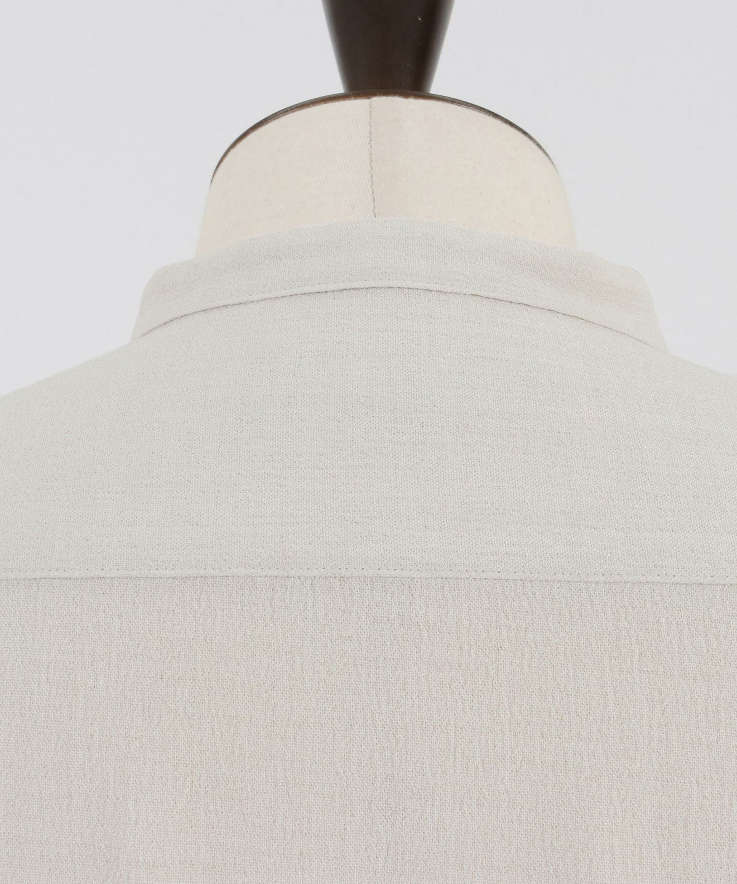 春夏らしい首元がすっきりとしたスキッパー仕様のリネンライクシャツ。