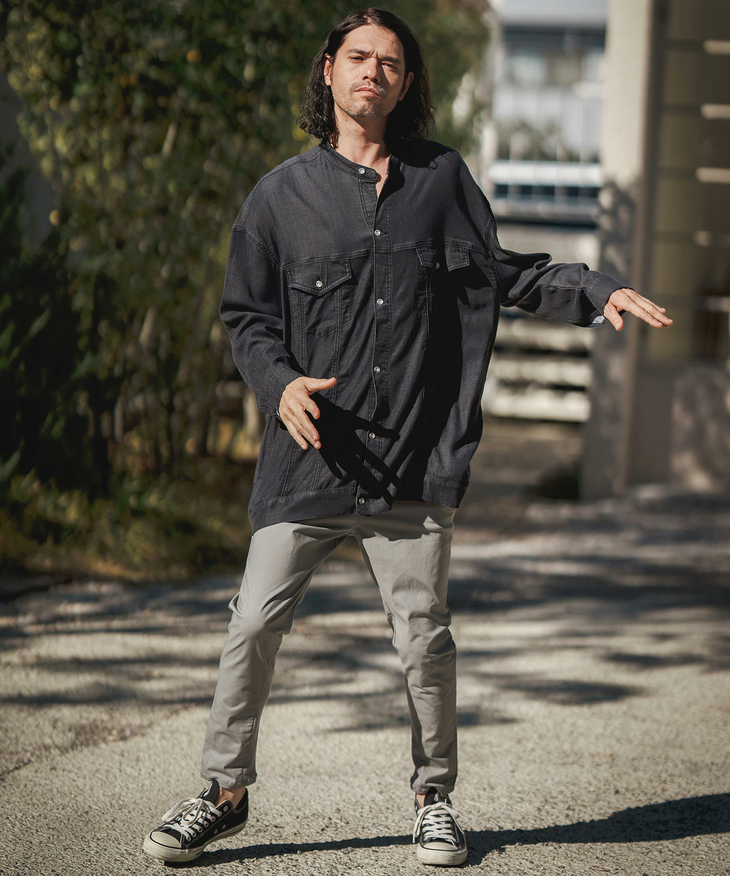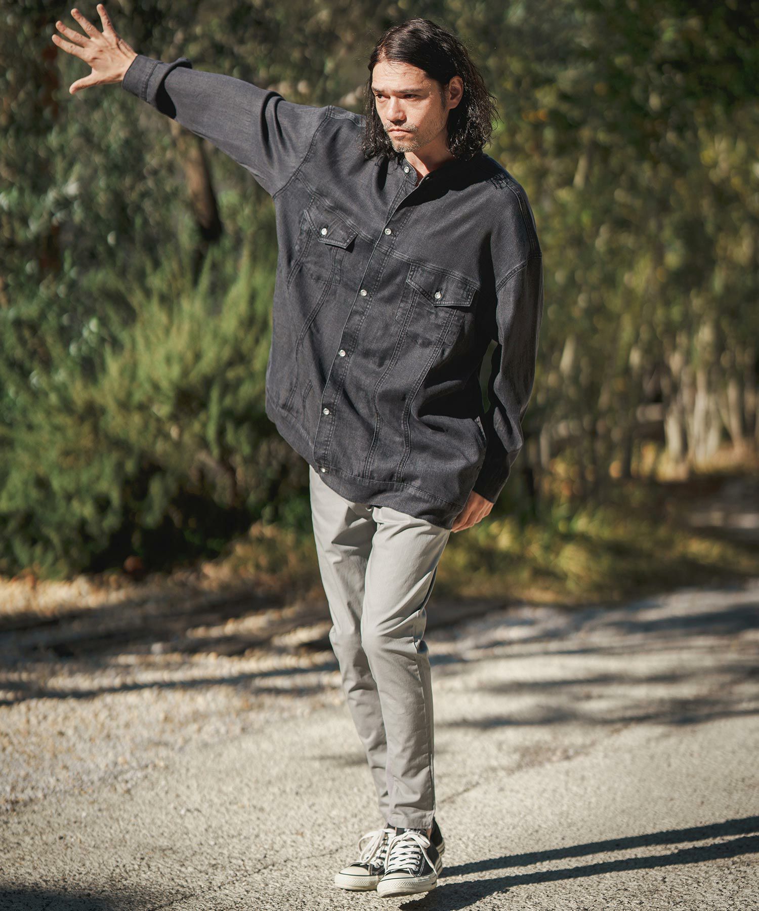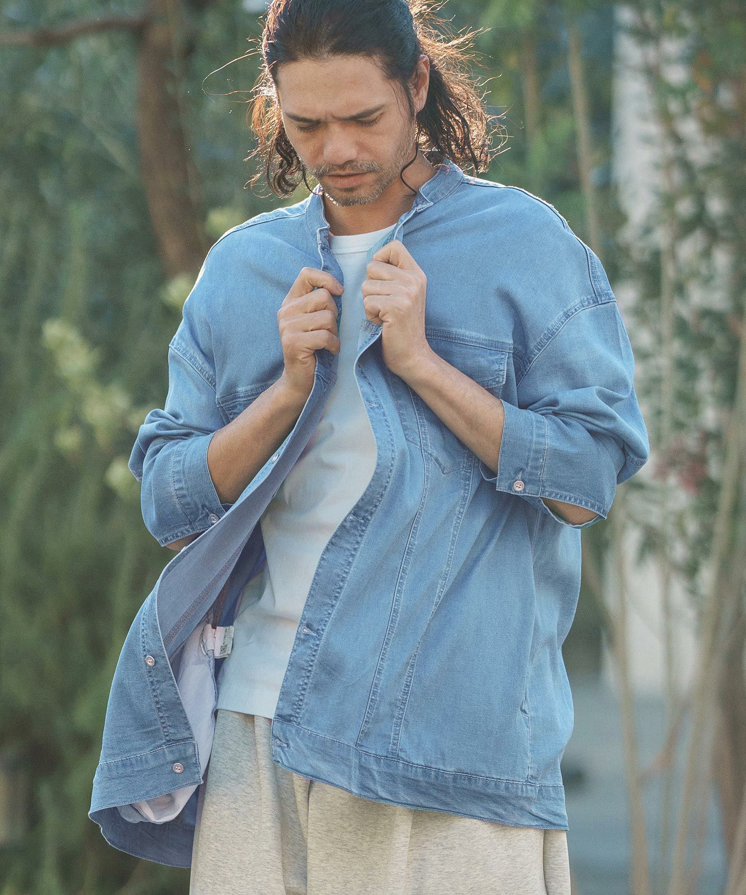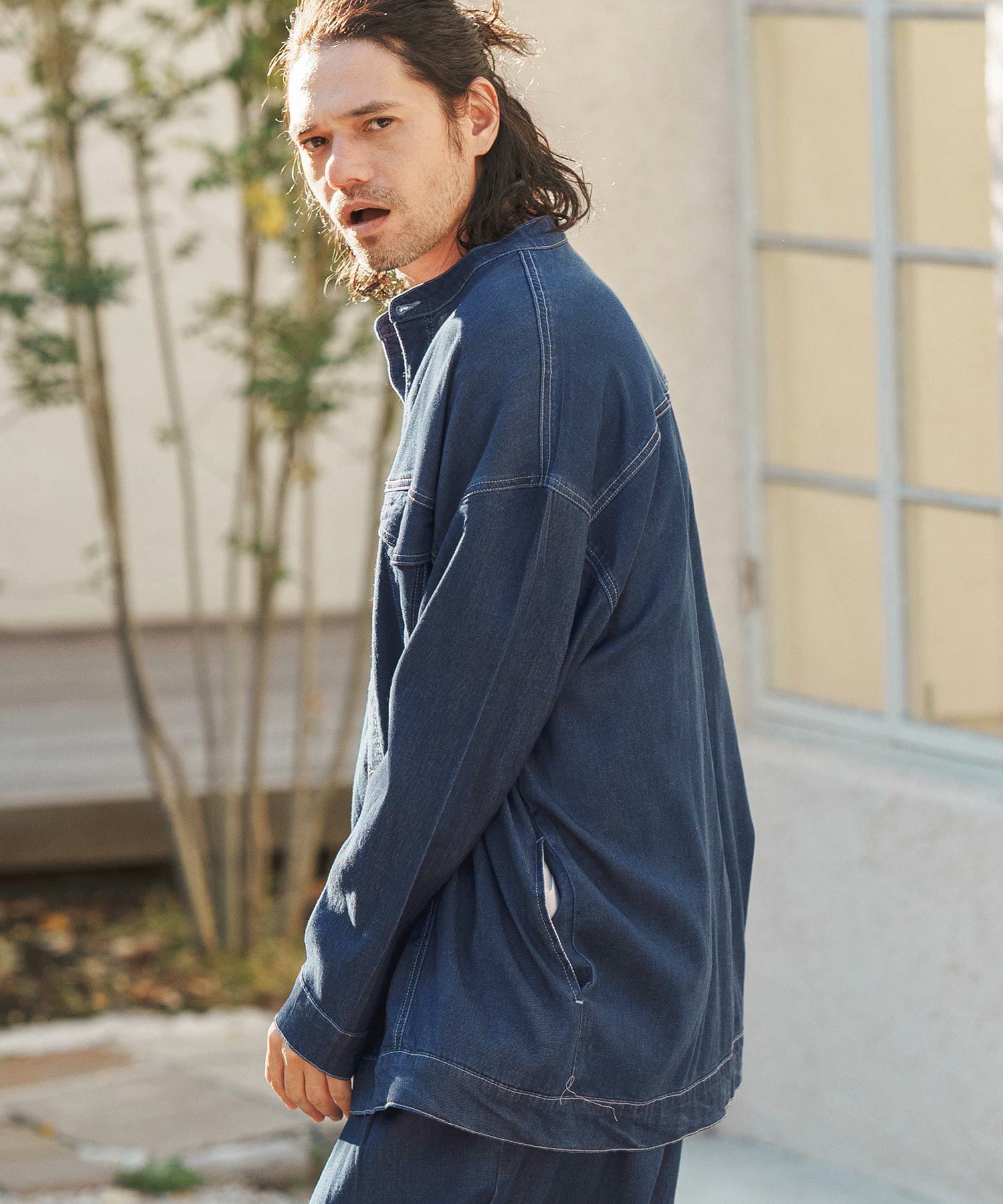 軽やかな風合いのインディゴ染テンセル生地を用いて、オーバーサイズシルエットに仕上げた、リラックスした着用感の1着です。