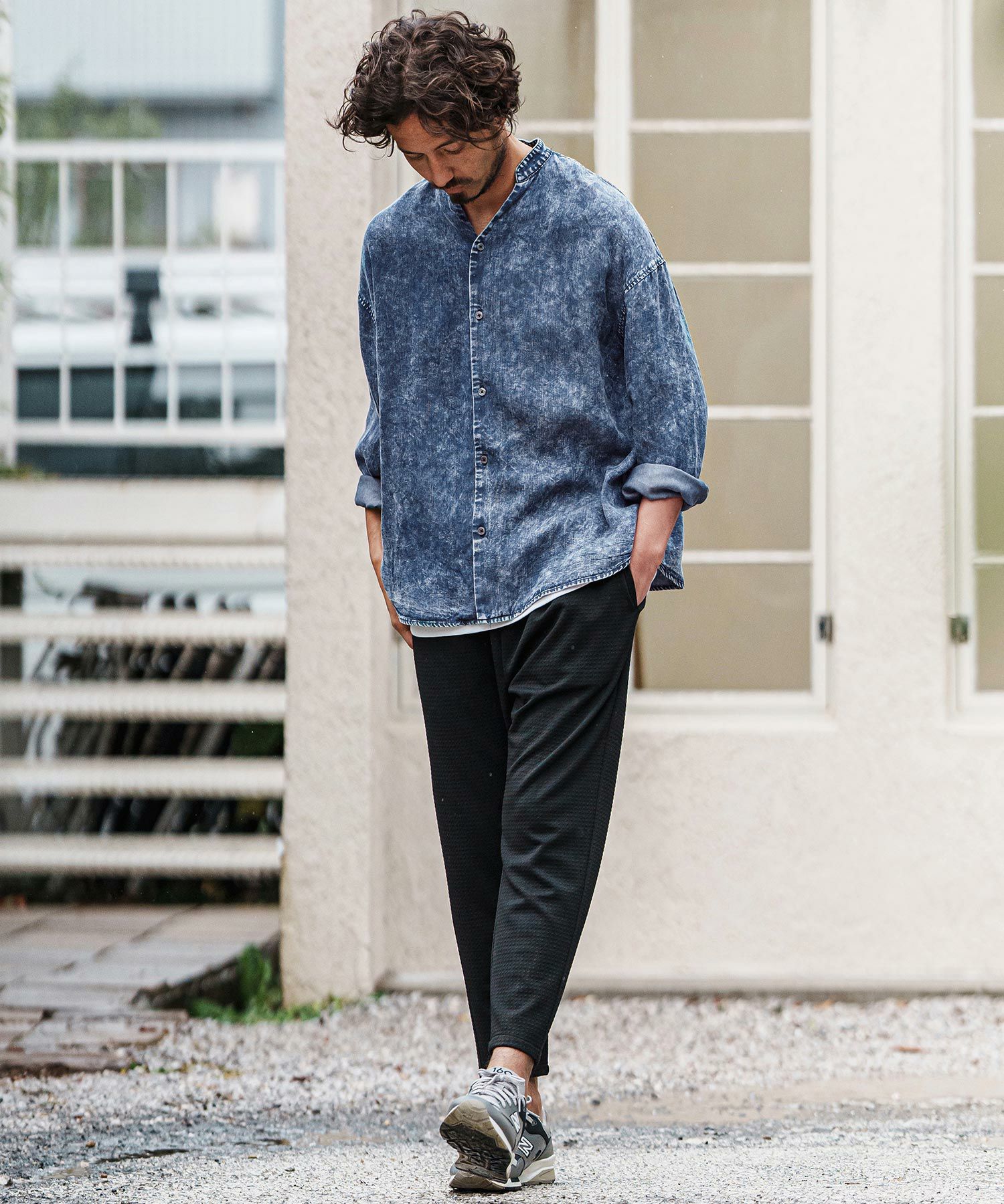 【CAMBIO(カンビオ)】Silky Chemical Wash Denim Skipper Band Collar Shirts スキッパーバンドカラーシャツ(MIU-251-003)