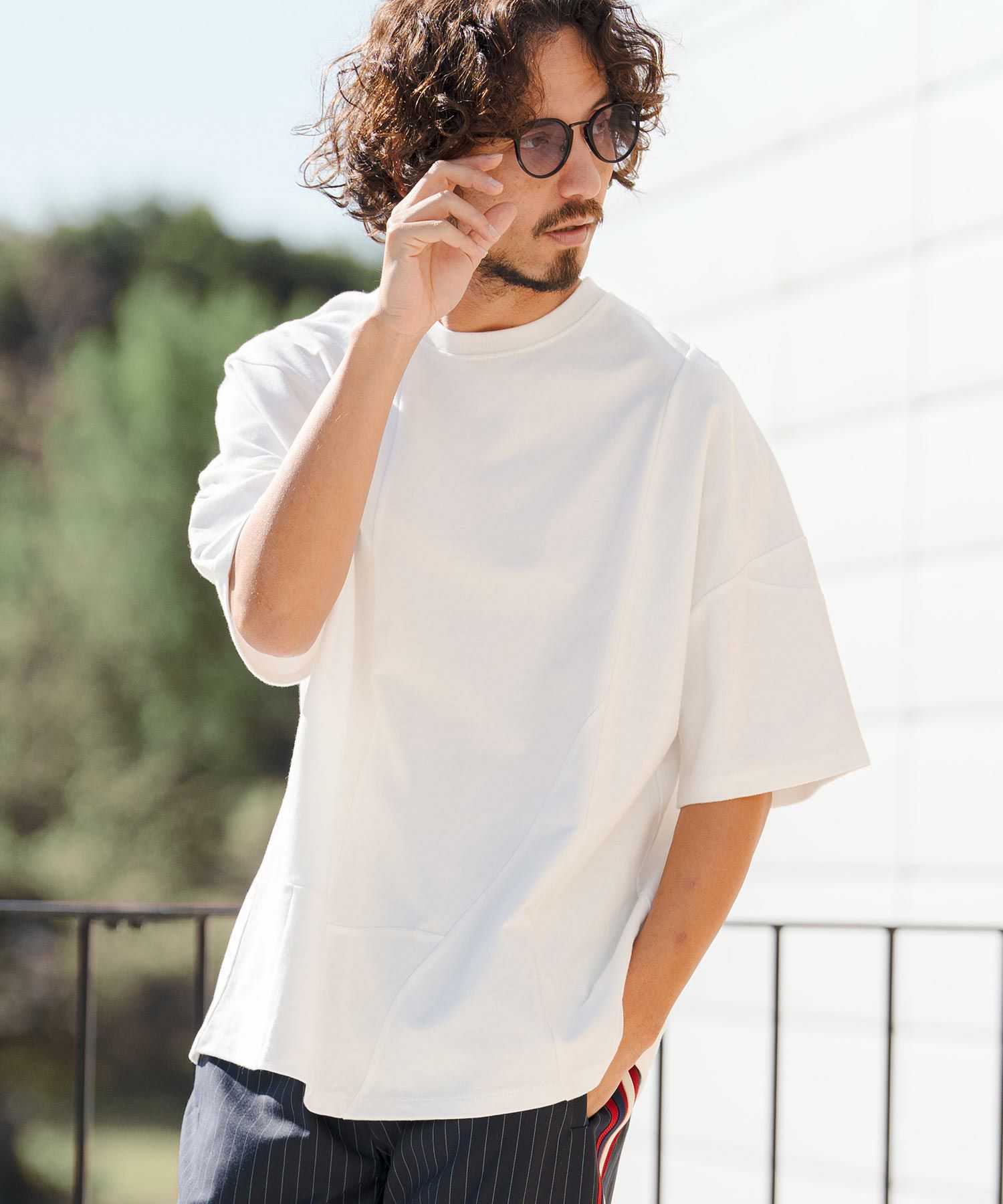ワイドな身幅・肩幅・袖周りに腰丈の着丈を合わせた、ボクシーなオーバーサイズシルエットです。