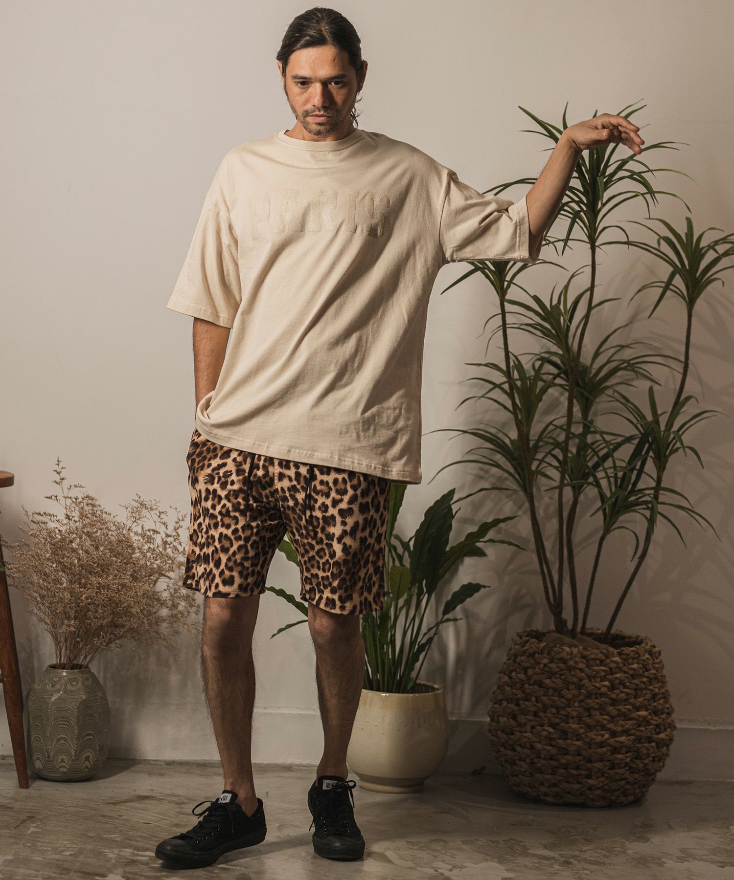 また同系色のプリント配色にすることで、大人でも着れるシックでクールな仕上がりに。