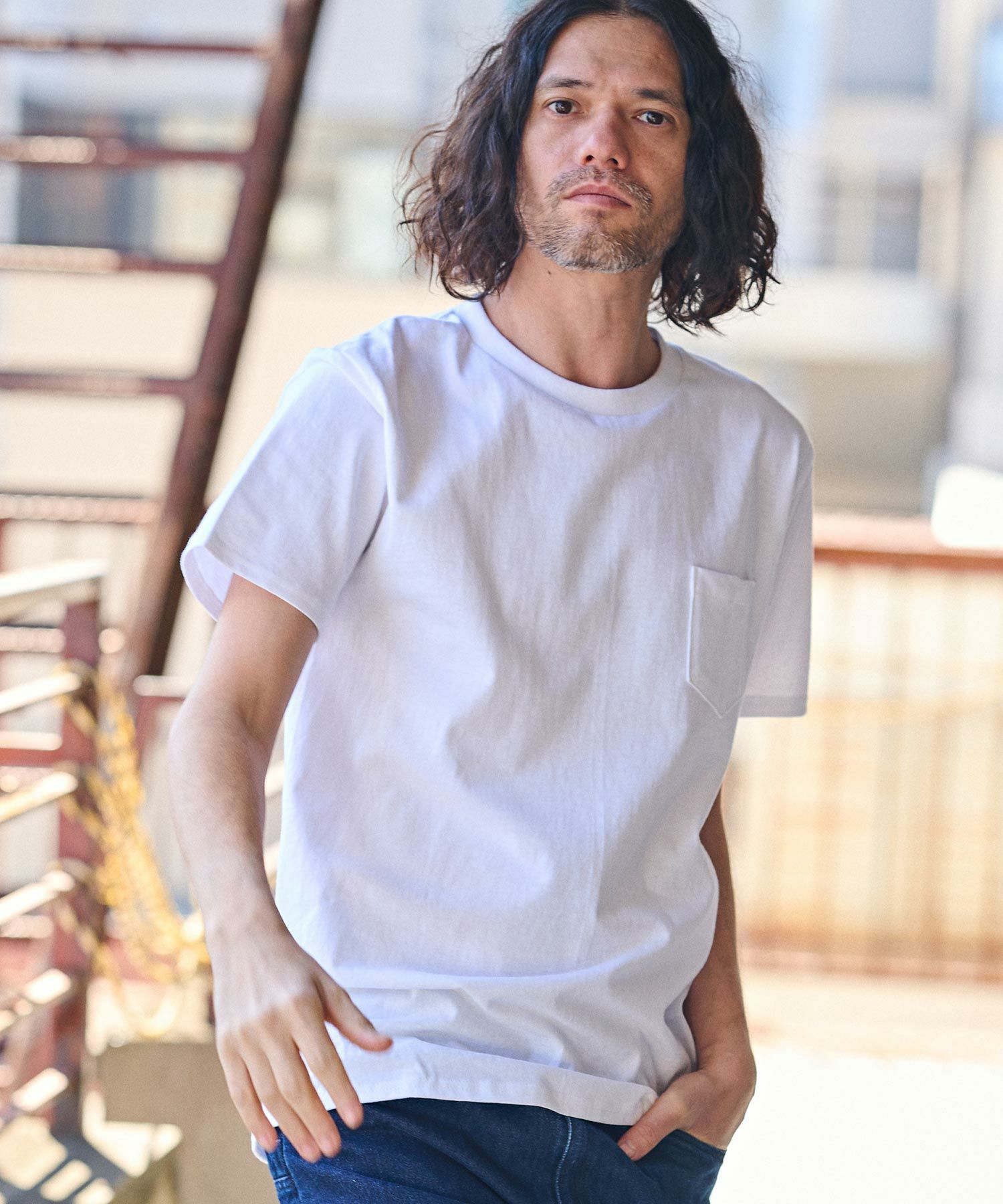 古き良きラフな質感の米綿を使用し、肌触りが心地良いポケット付きTシャツ。