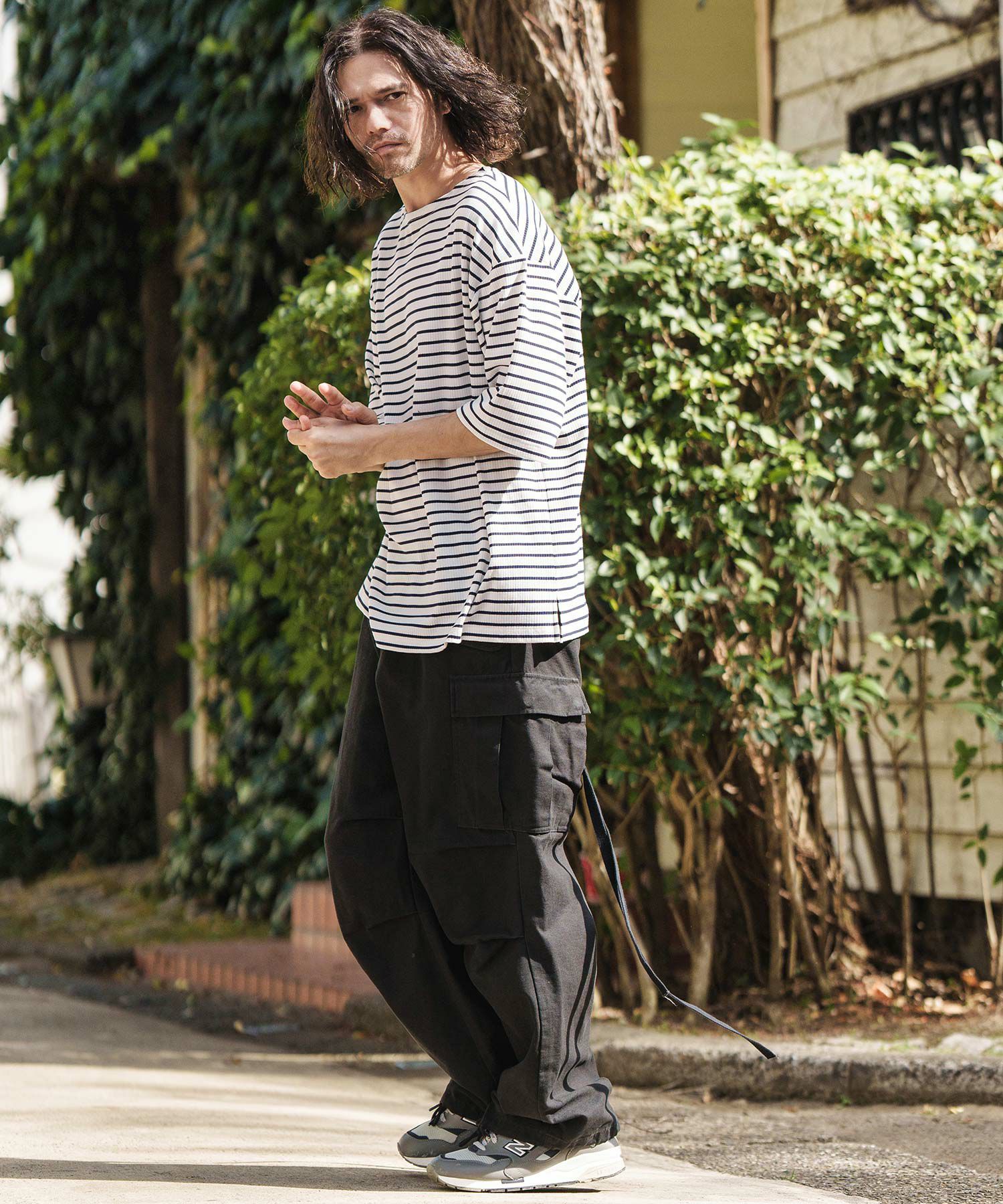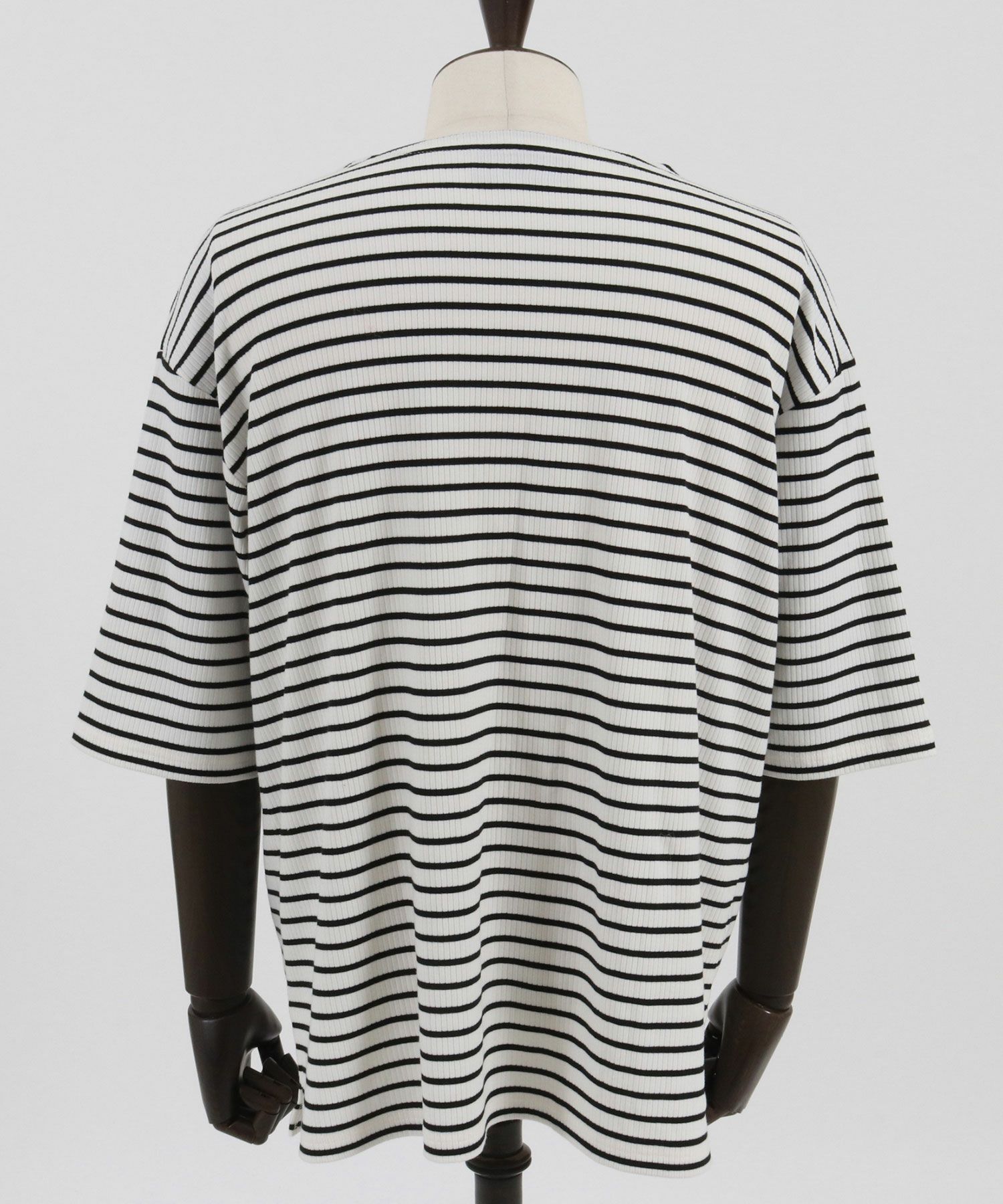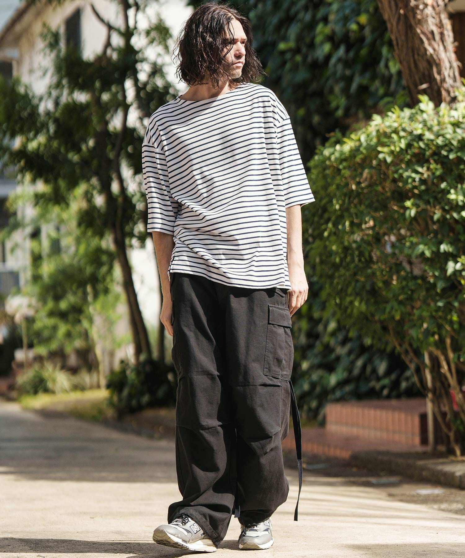 ゆったりとした首回りと清涼感溢れるバスクボーダーが春夏シーズンらしいアイテムです。