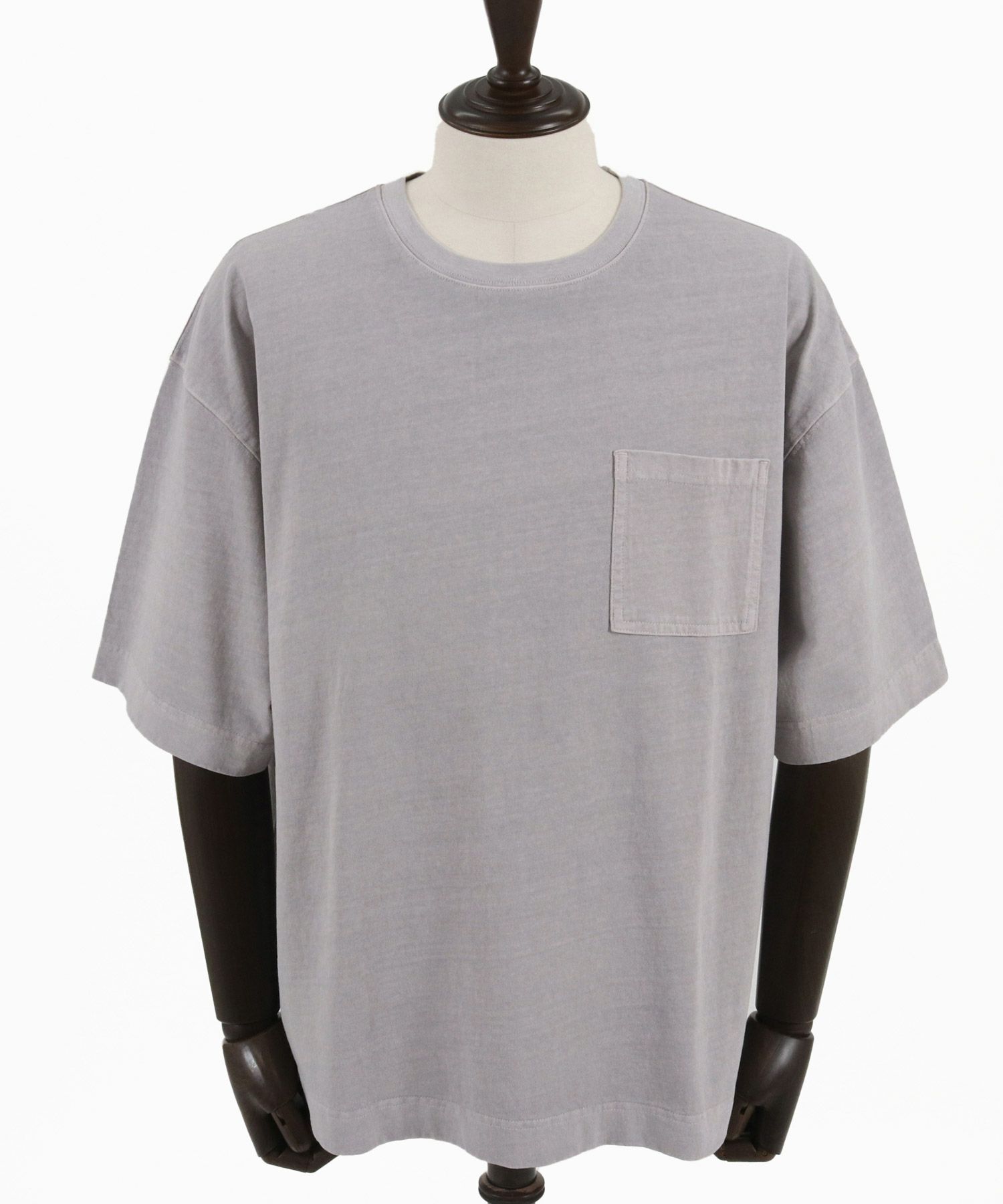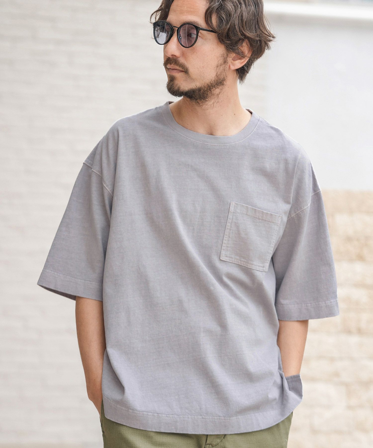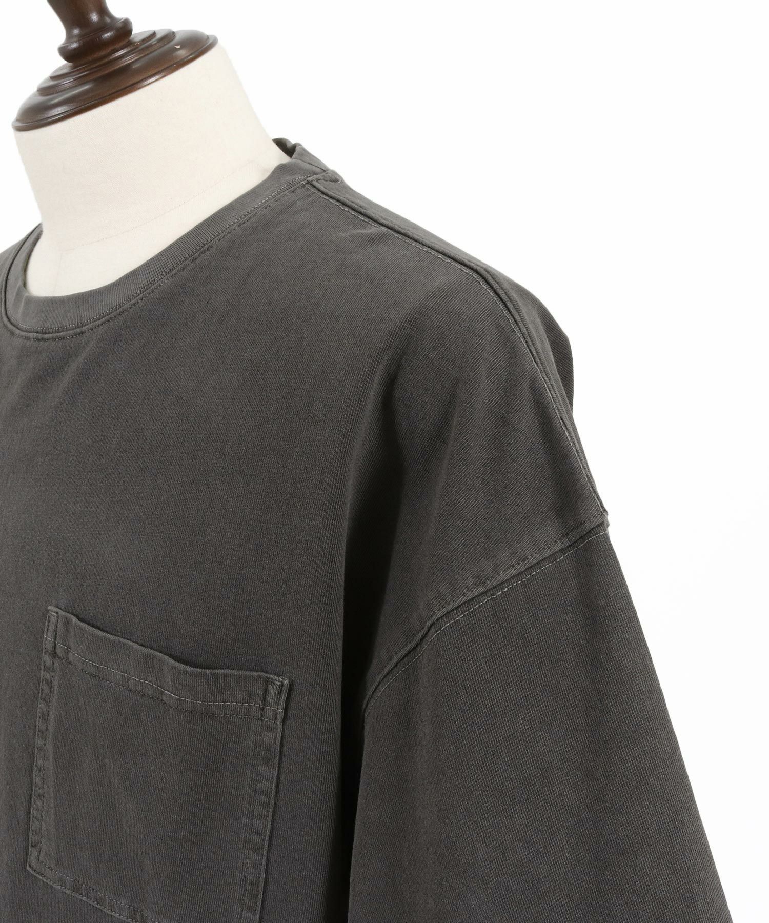 ピグメント加工を施したポケ付きTシャツ。