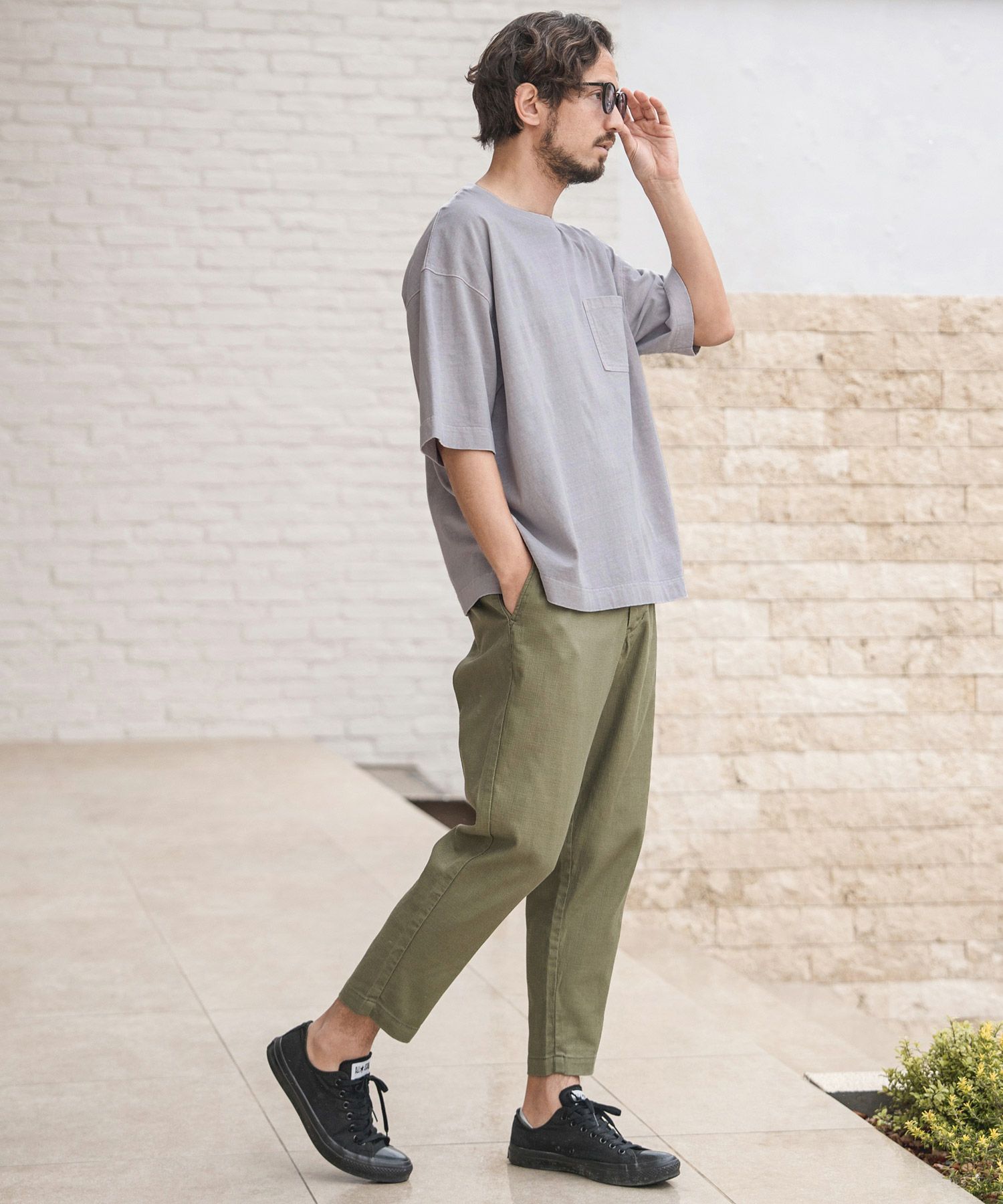 独特な雰囲気がスタイリングに味付けをしてくれる一枚です。