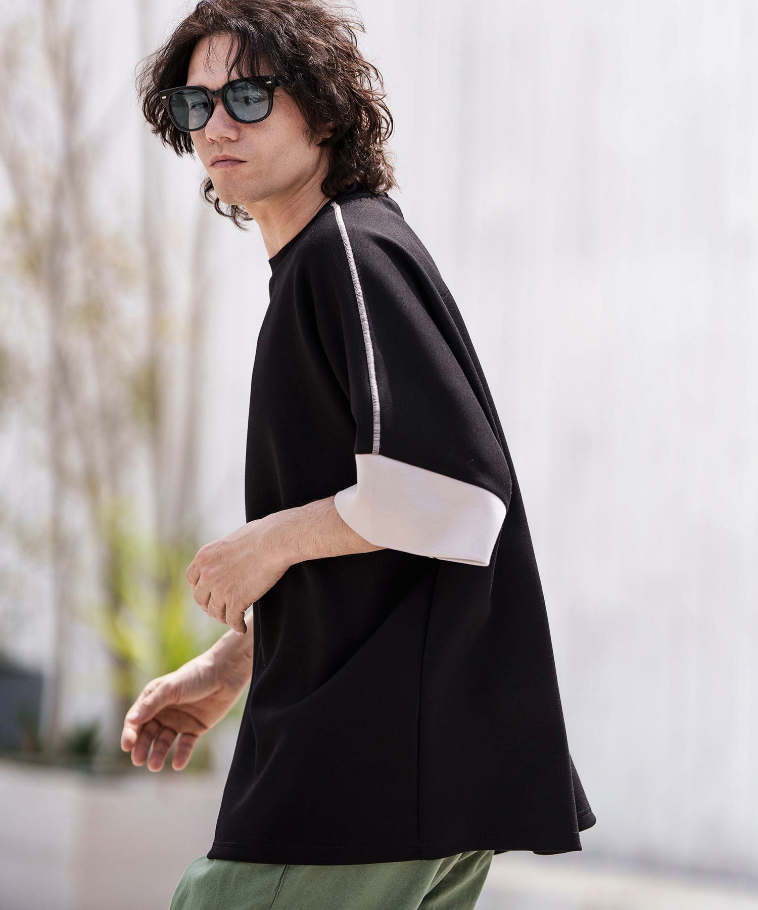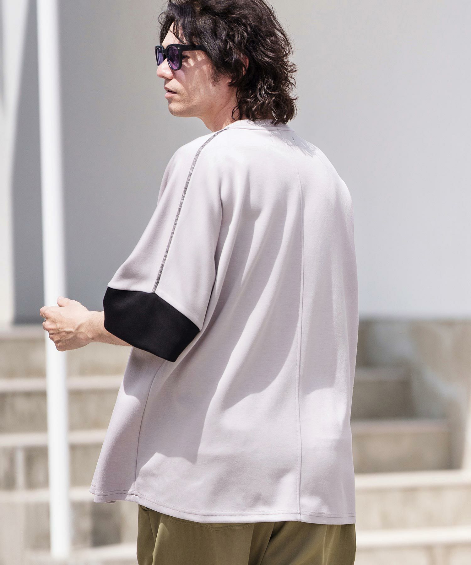 袖口が配色切り替えのデザインになっているのがポイント。