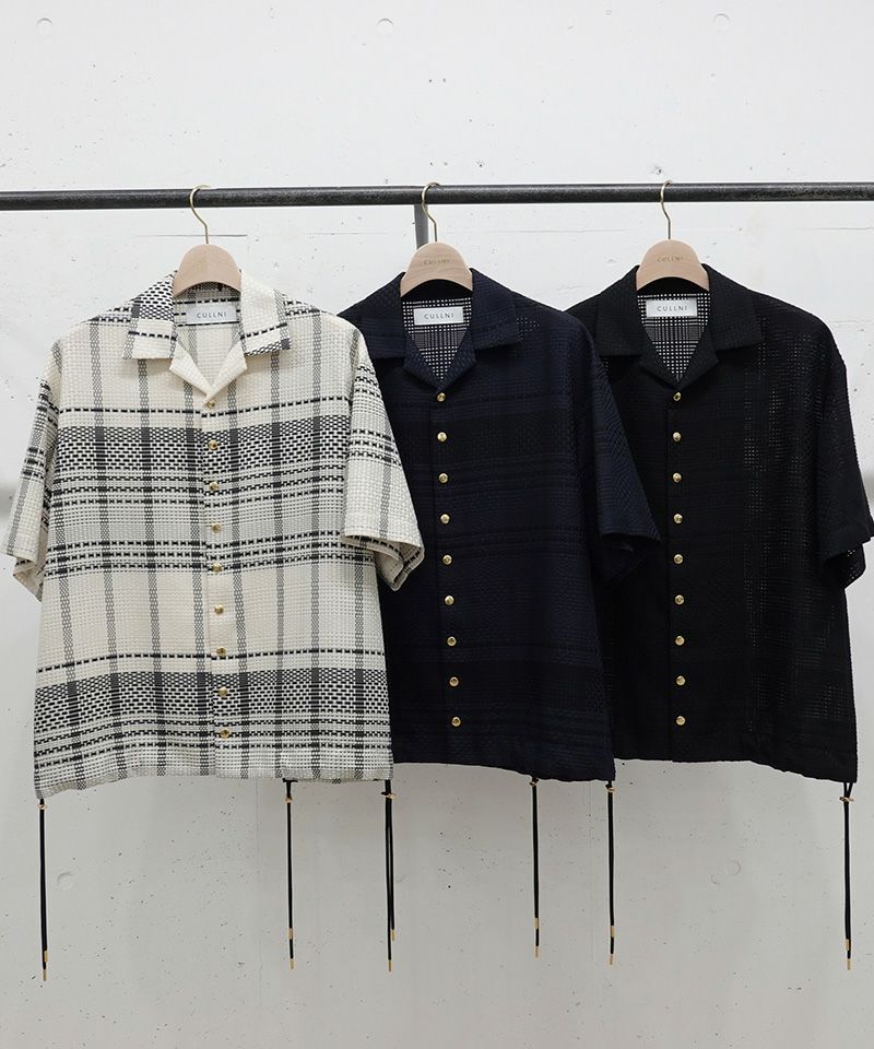 他の画像を見る SALE CULLNI 30%OFF【CULLNI(クルニ)】Sheer Tile Check Drawstring Open Coller Short Sleeve Jaket オープンカラージャケット(25-SS-030B) ¥ 39,600 ¥ 27,720 税込 お気に入りに登録する