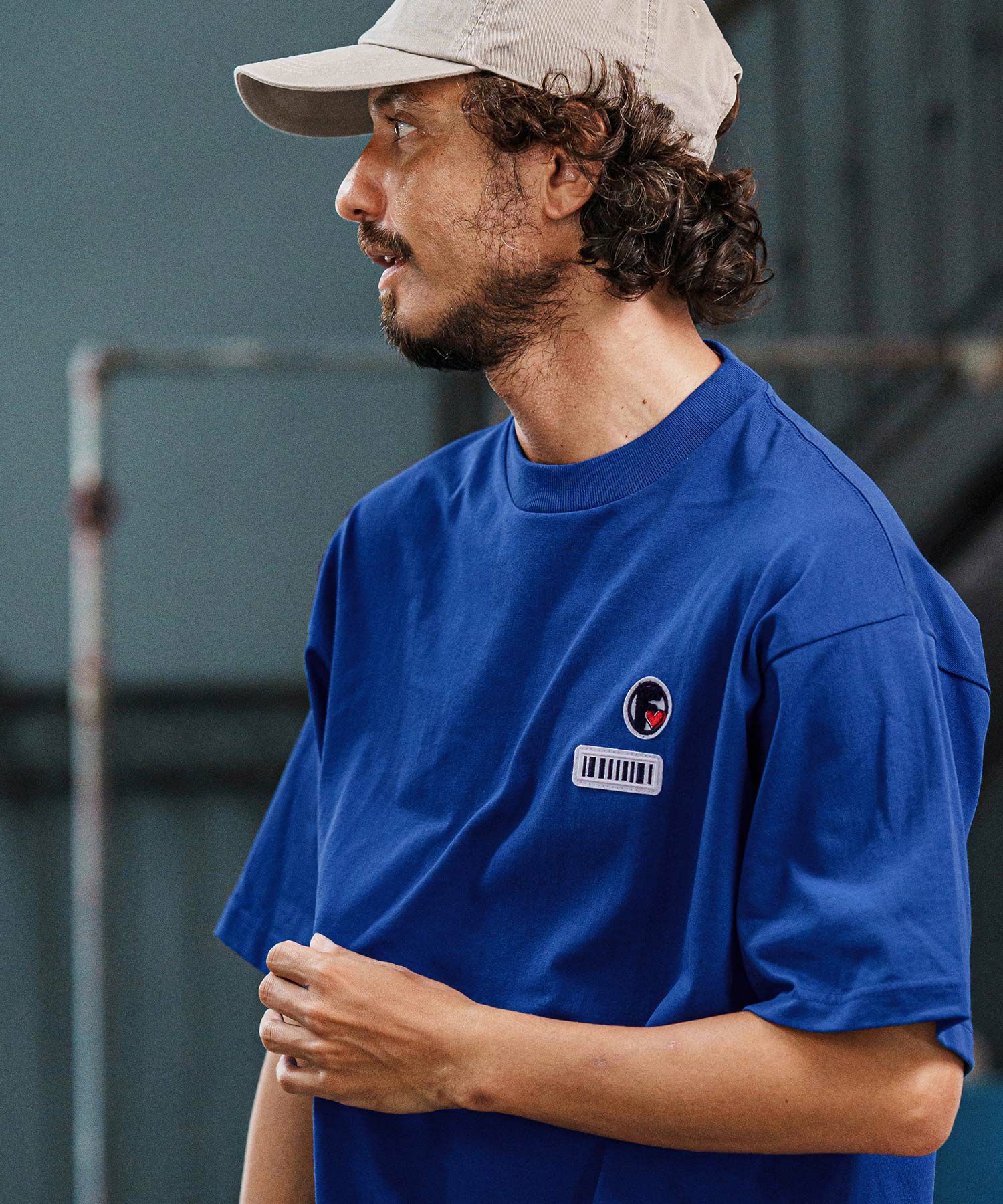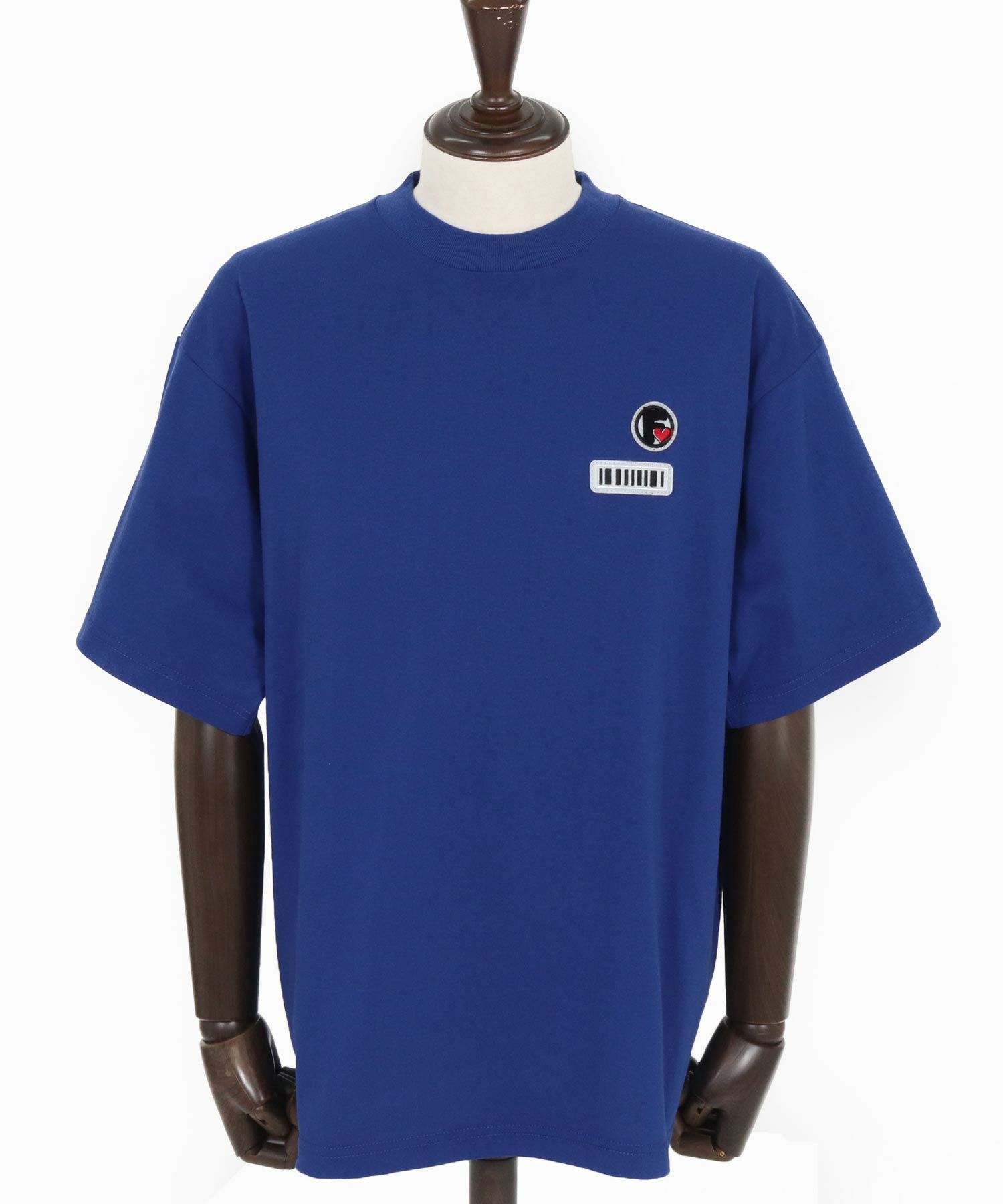 胸元にサガラ刺繍※のブランドロゴワッペンと、バーコードワッペンの組み合わせをセット。