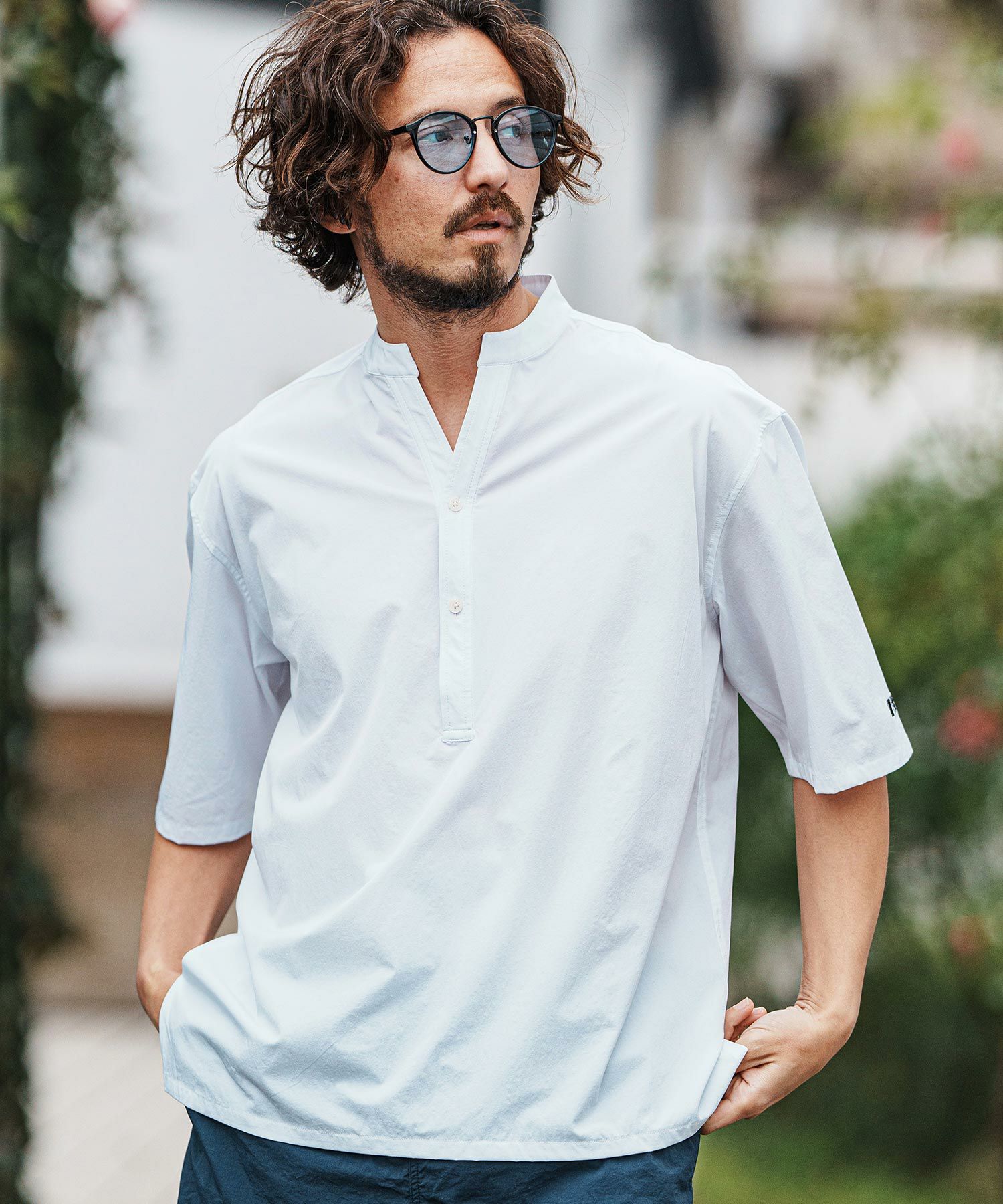 サラサラとした清涼感のある素材を使用した5分袖プルオーバーシャツ。