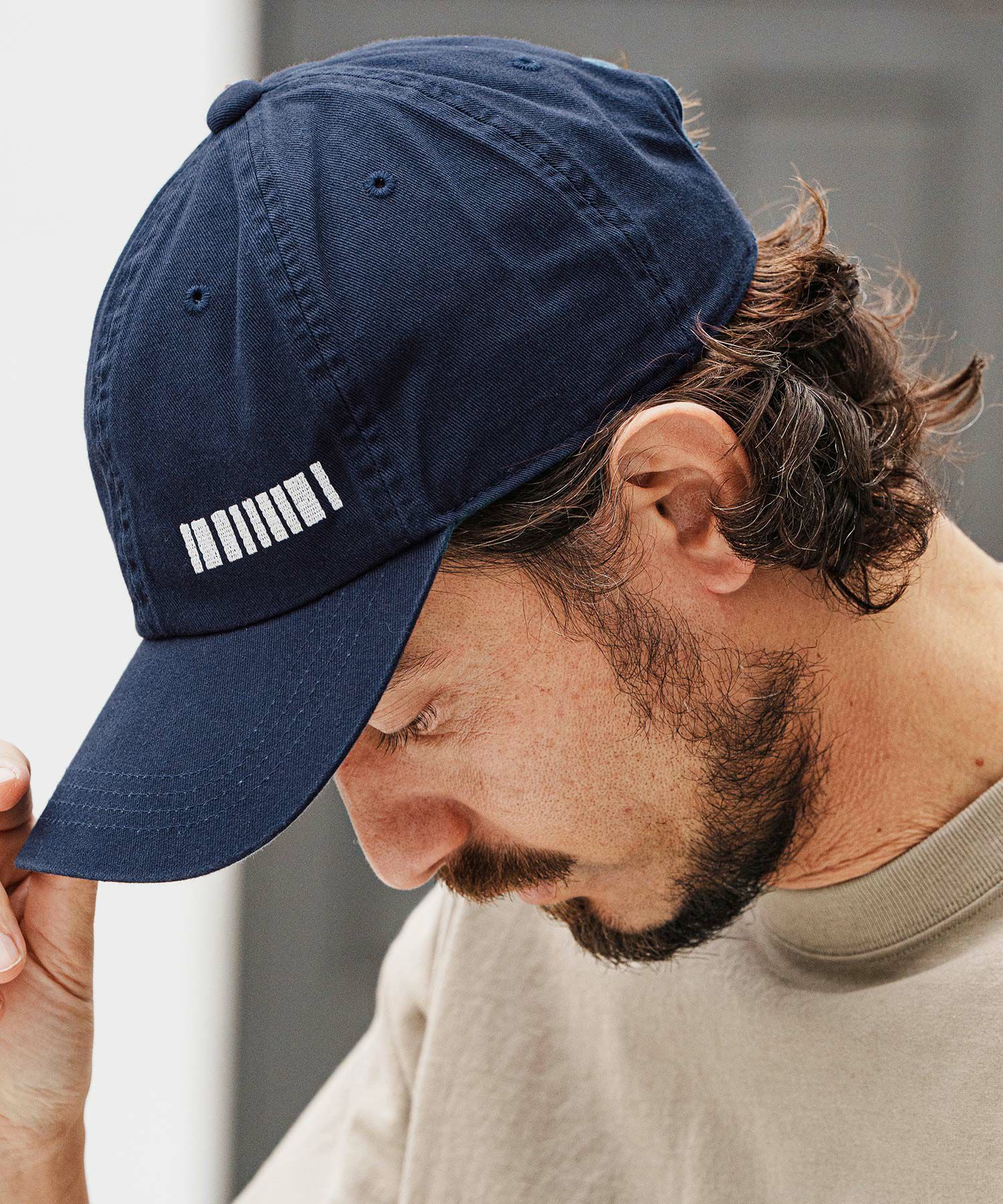 コットン素材のオーソドックスなベースボールキャップにFelkodのアイコンであるバーコード刺繍をセットしたシンプルなデザイン。