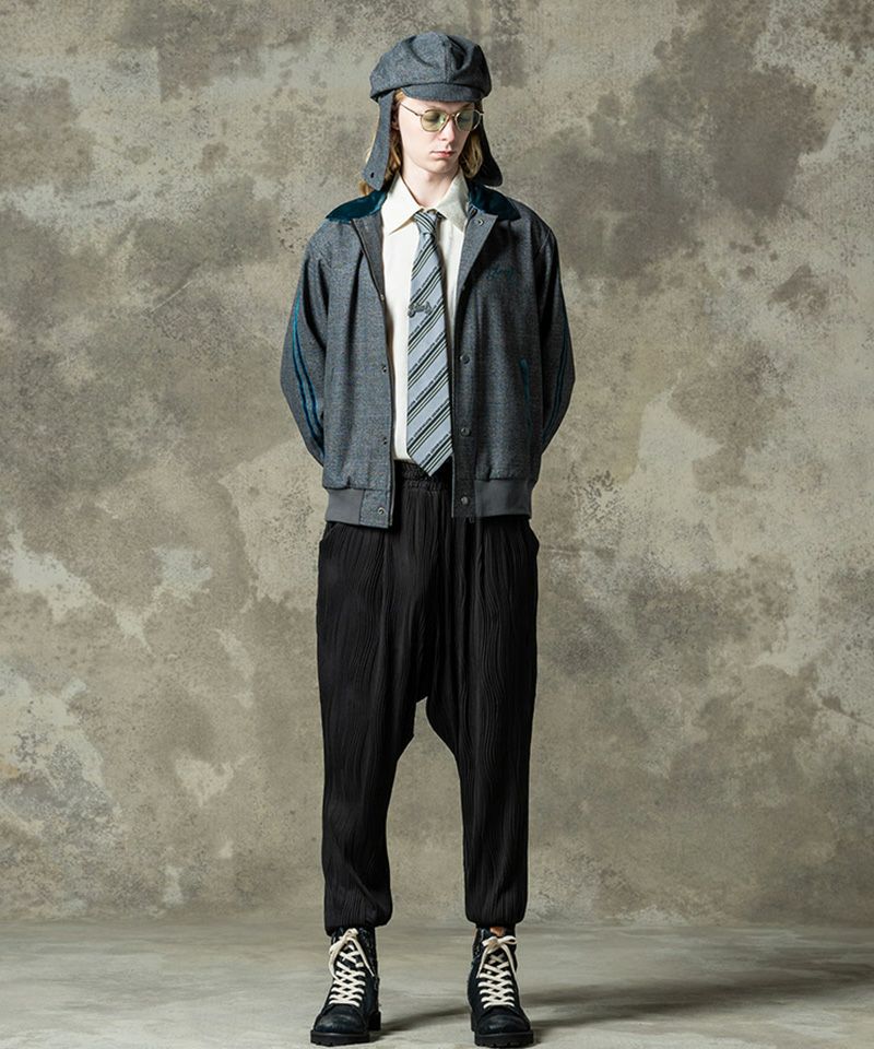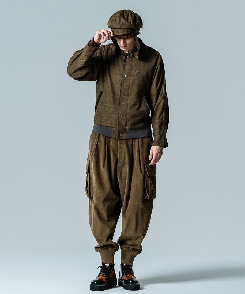 シルエットは着丈を短めに設けたコンパクトな輪郭にまとめ、ハンティングやゴルフといった紳士競技のウェアを思わせる上品でありながらアクティブな佇まいにまとめました。