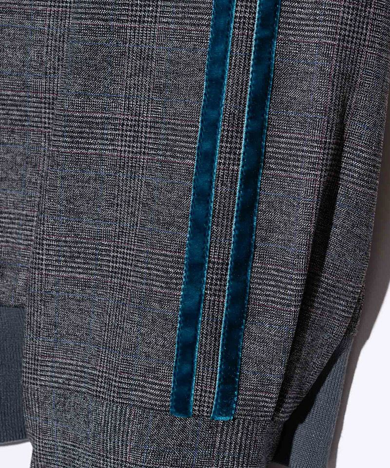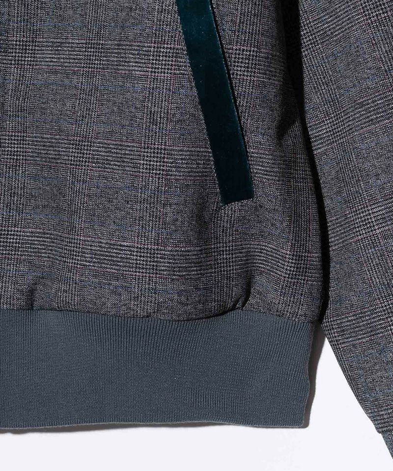 身生地には微起毛のグレンチェック生地、配色となった要所の切り替えにはベルベットを使用。
