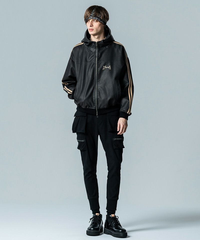 他の画像を見る glamb 【glamb(グラム)】Synth Leather Hooded Track Jacket シンセレザーフーデッドトラックジャケット(GB0125-JKT09) ¥ 45,650 税込 お気に入りに登録する