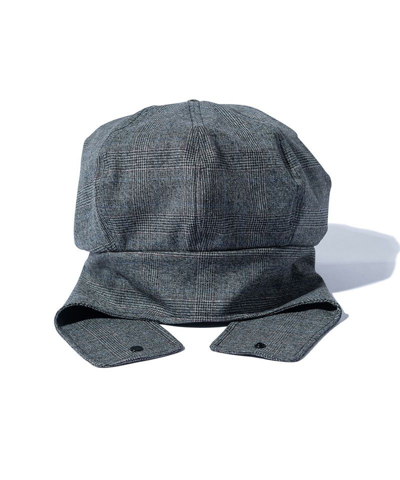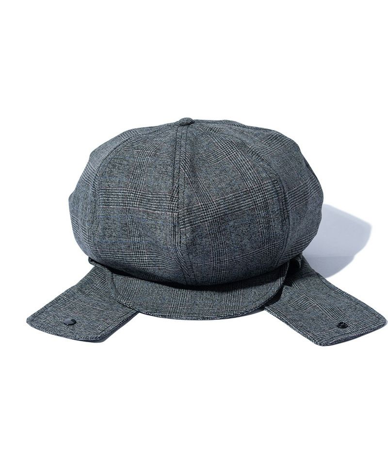 両サイドに耳当てを設けながら本体のシルエットはキャスケットに。