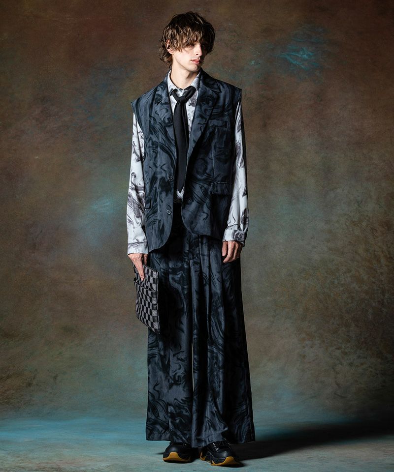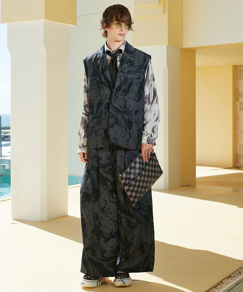 ウエストはやや高めに設定しており、スウィングジャズの時代に生まれたズートスーツを現代へ向けて再構築するかの佇まいとなっております。
