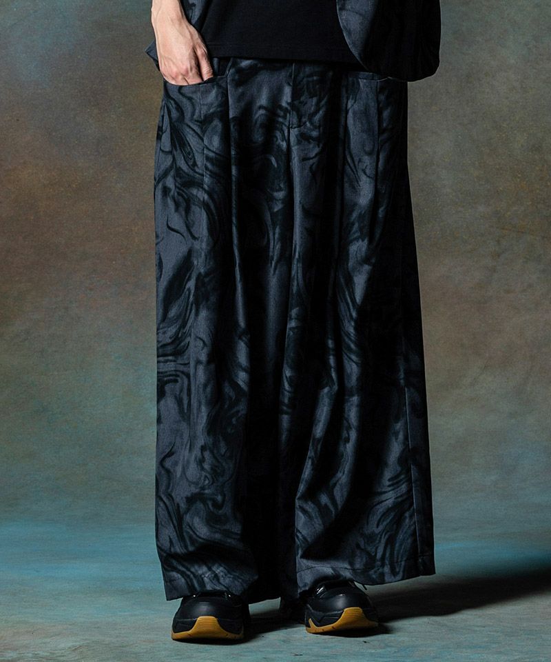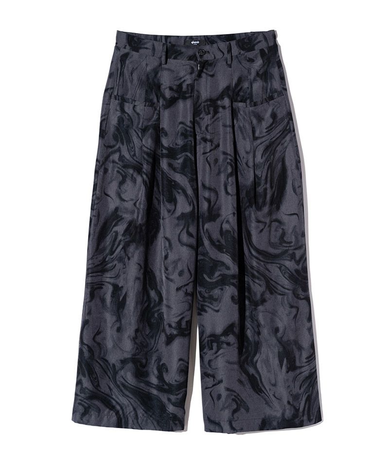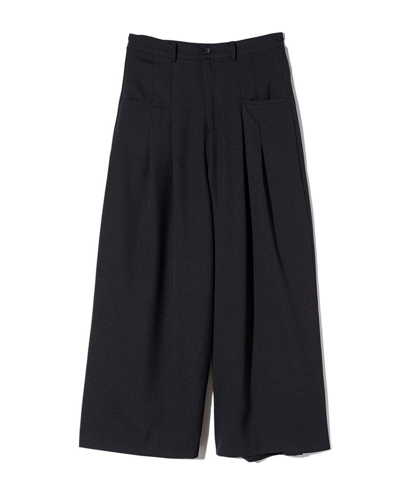 エレガントなワイドシルエットは左右の腰元に2つずつタックを取って作り上げたもの。