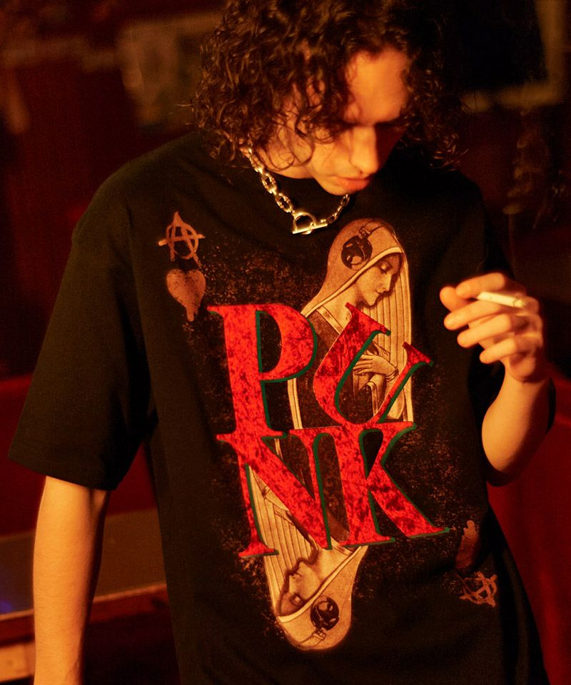 荘厳なモチーフを音楽のエッセンスでglambらしくヴァンダライズしたPunk Prayer T-Shirt。