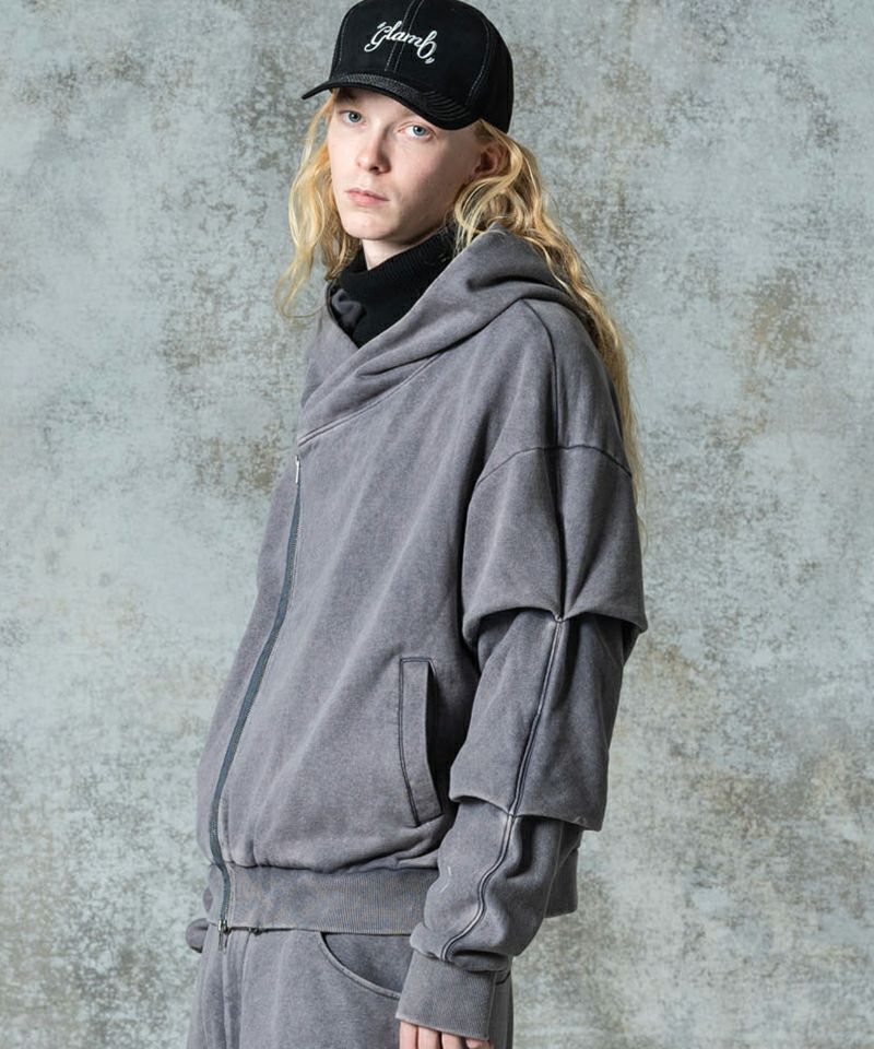 他の画像を見る glamb 【glamb(グラム)】Asymmetry Layered Hoodie アシンメトリーレイヤードフーディ(GB0125-CS21) ¥ 28,600 税込 お気に入りに登録する