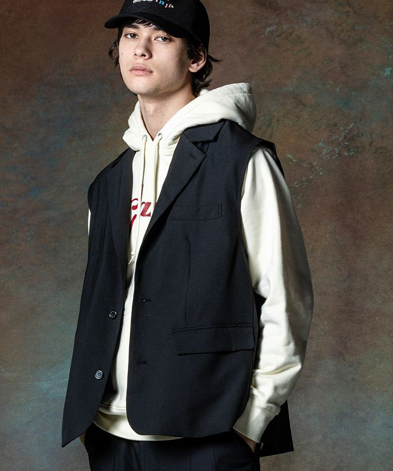 大胆なシルエットリメイクでクラシカルなテーラードジャケットをサマーストリートに提案するSleeveless Tailored Jacket。
